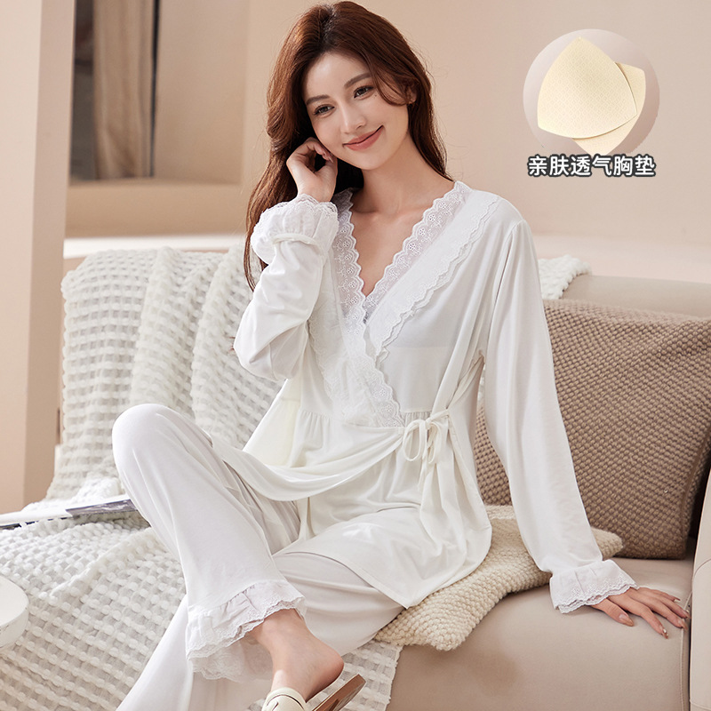 Модальная одежда с ограничением, кружевная с длинным рукавом, Послеродовая Пижама для кормления, летняя тонкая домашняя одежда для беременных для женщин