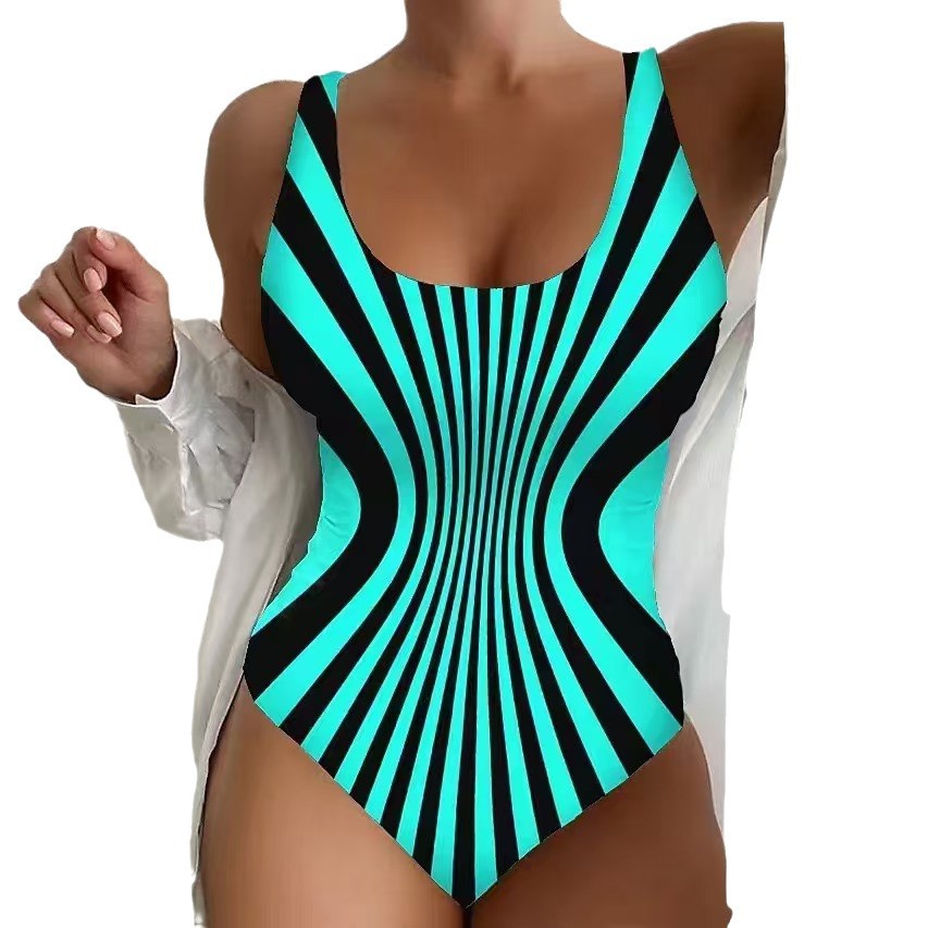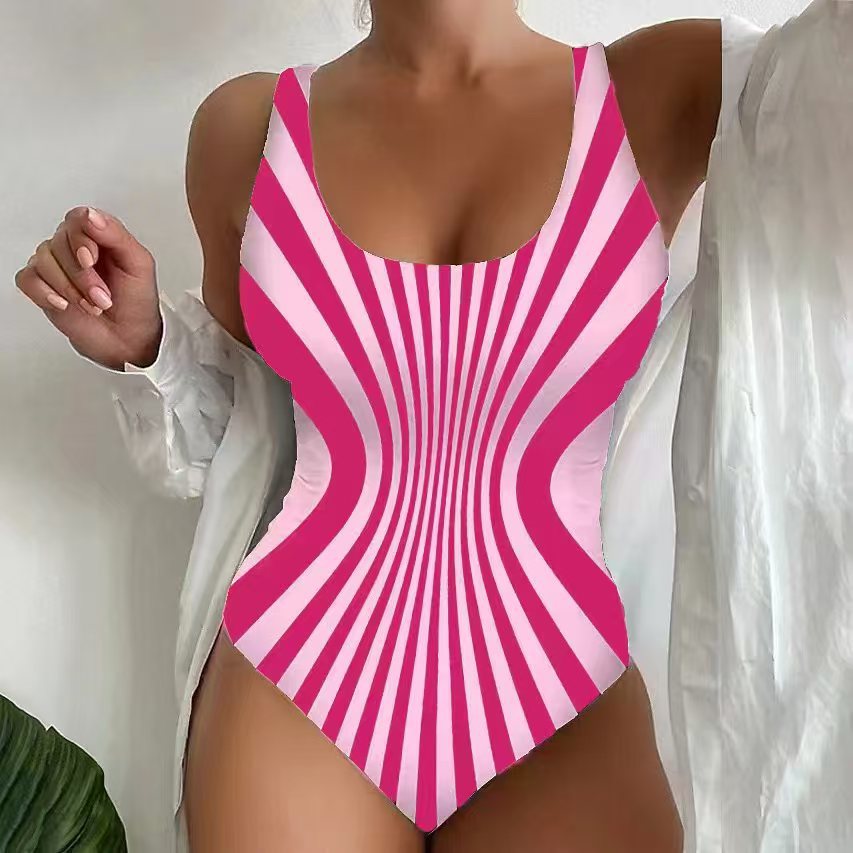 Купальник женский 2023 летний новый взрывной европейский и американский сексуальный слинг цельный полосатый купальник быстро сохнет
