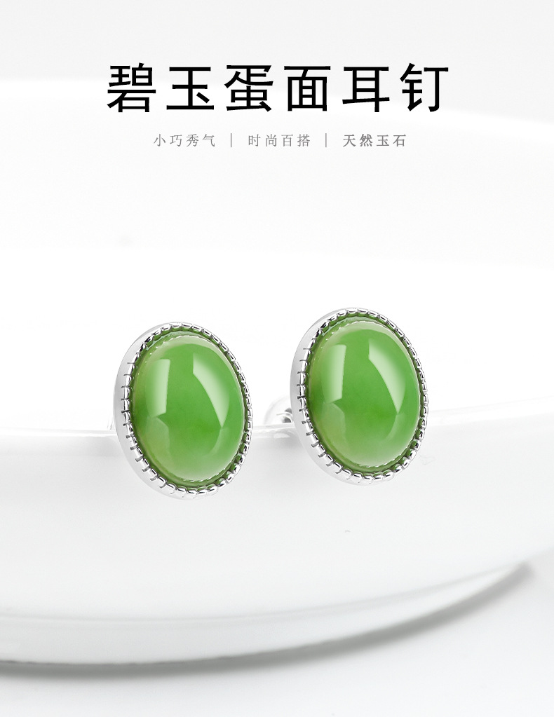 Подлинный шпинат зеленый натуральный старый материал Hutian Jade яичная лапша серьги женская S925 Серебряная инкрустированная нефритовая минималистская серьги