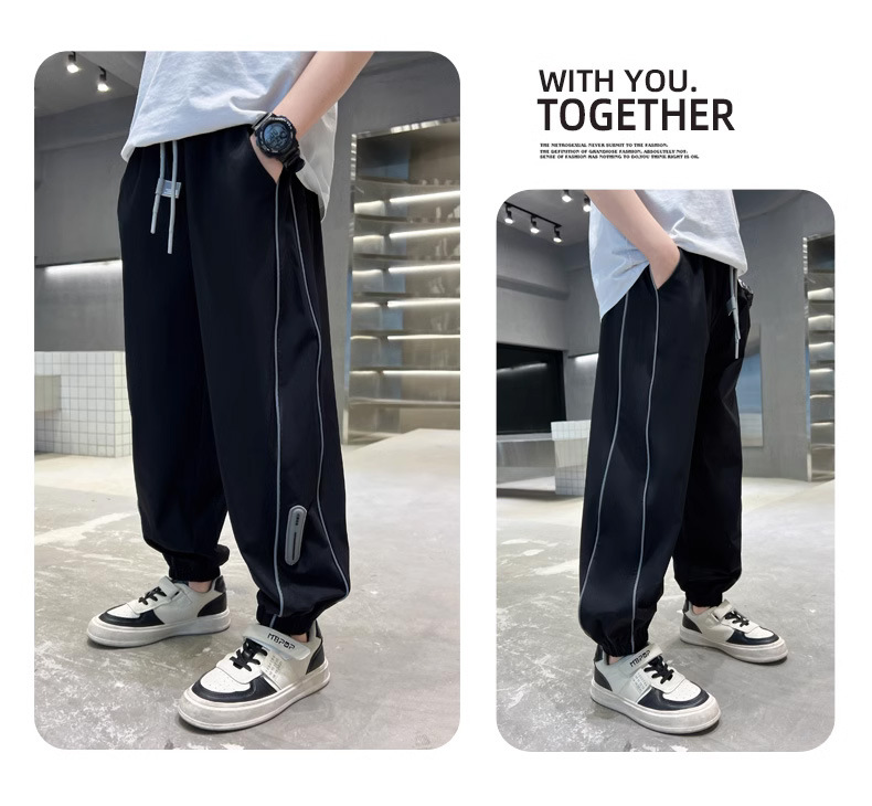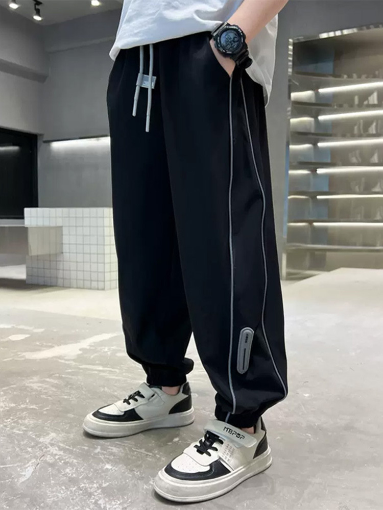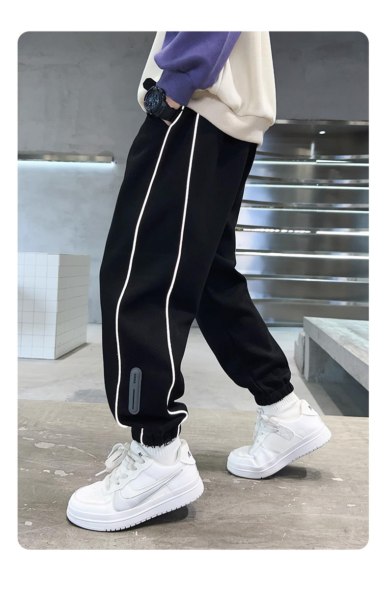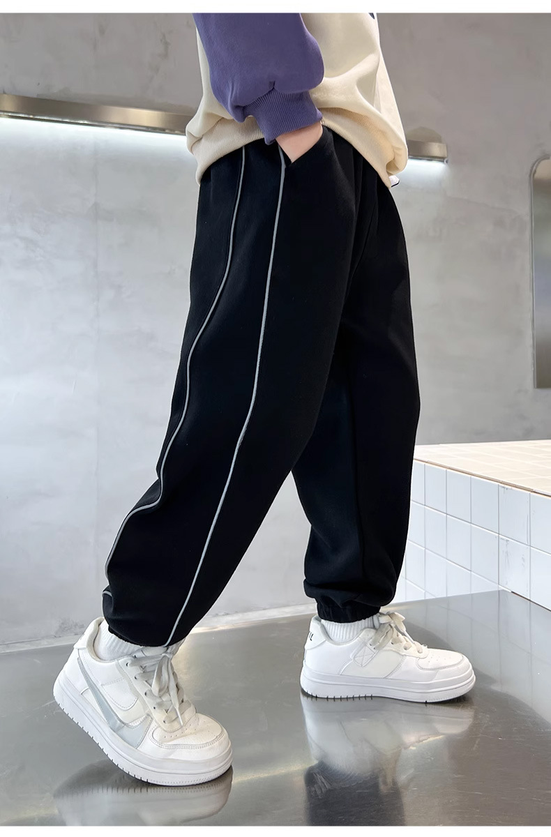 Детская одежда, спортивные брюки для мальчиков, весенне-осенние спортивные брюки в корейском стиле, длинные брюки для мальчиков для детей постарше, модные спортивные штаны на флисовой подкладке со светоотражающими элементами