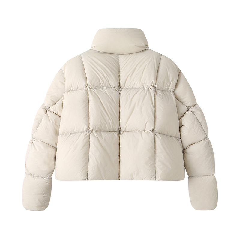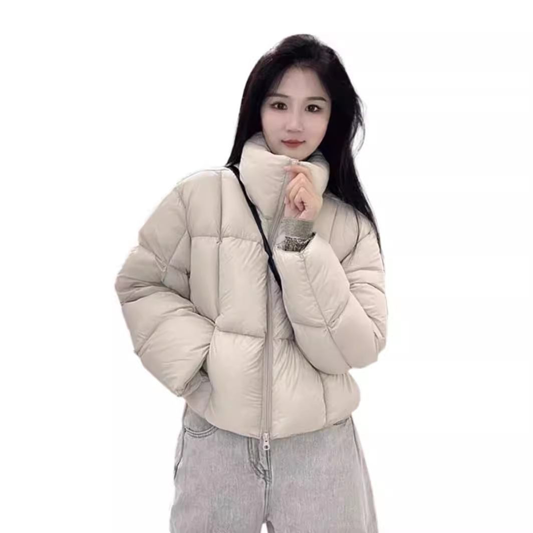 2023 зимняя новая женская одежда, простая однотонная элегантная Высококачественная куртка с коротким воротником-стойкой, пуховик для женщин