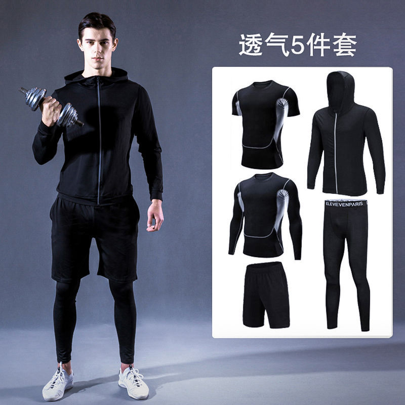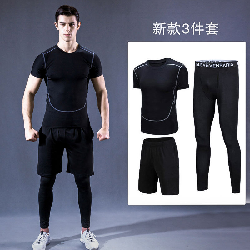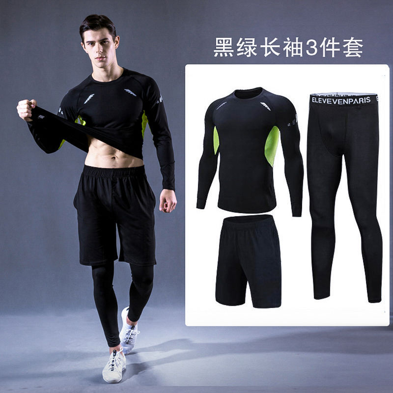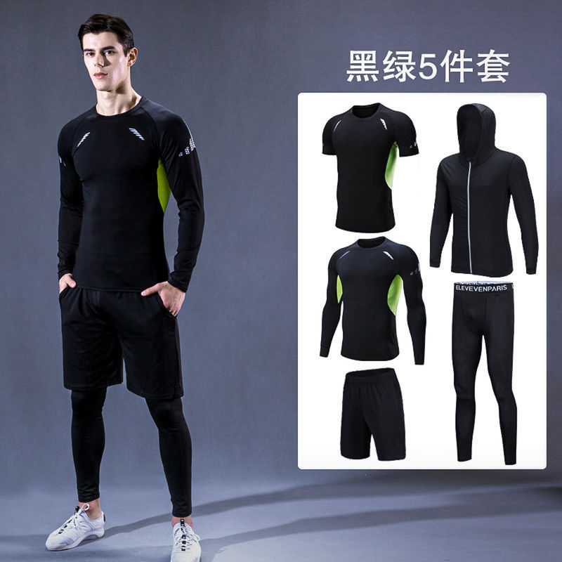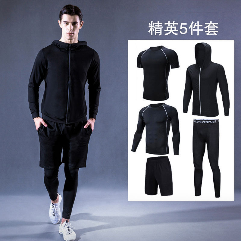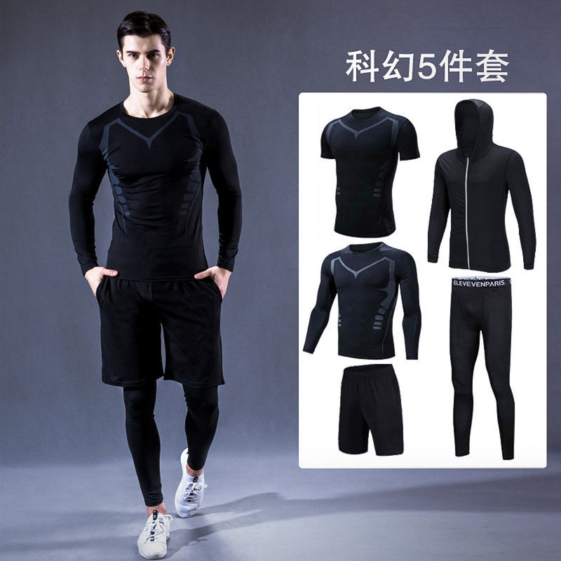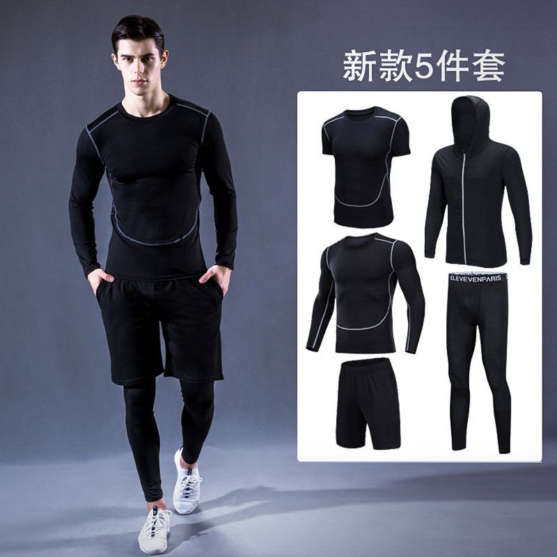 Мужской спортивный костюм для бега, весенне-осенняя одежда для бега, тренировочная одежда из трех предметов, тренировочная одежда, футболка с коротким рукавом, мужской костюм из пяти предметов