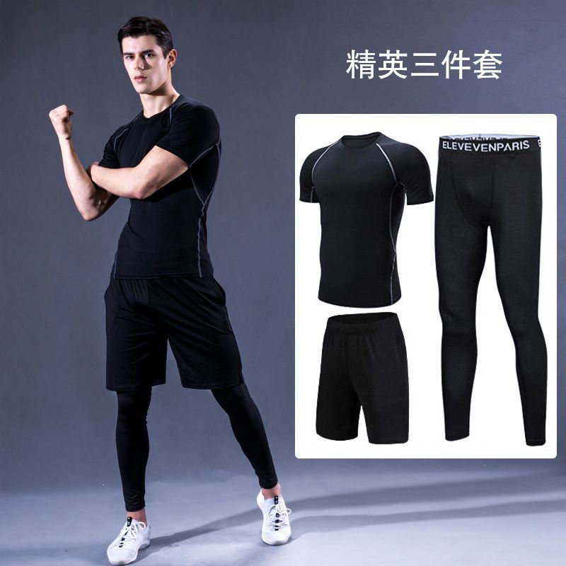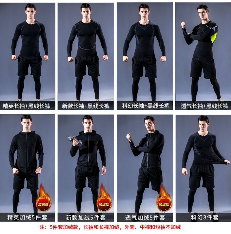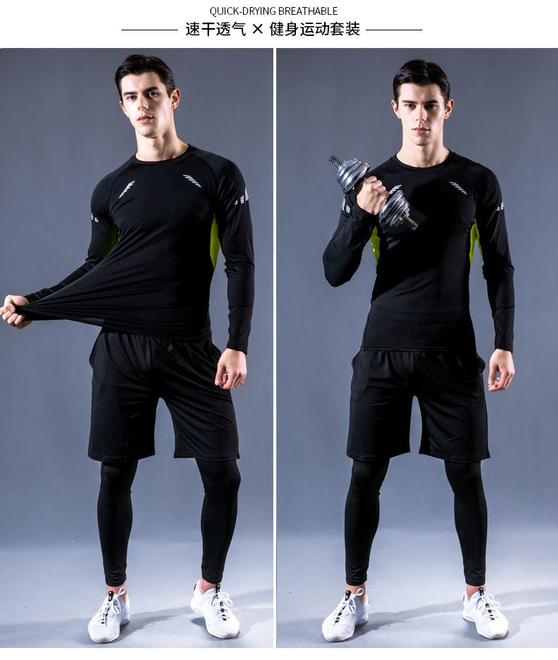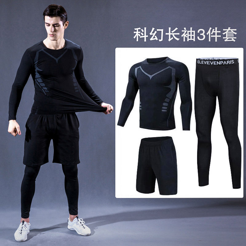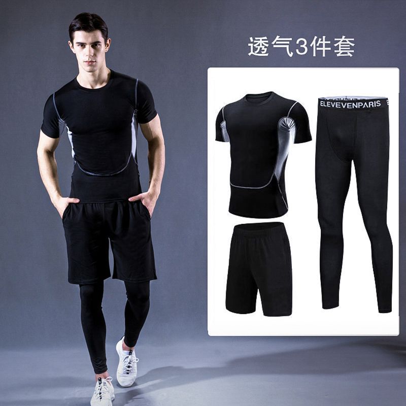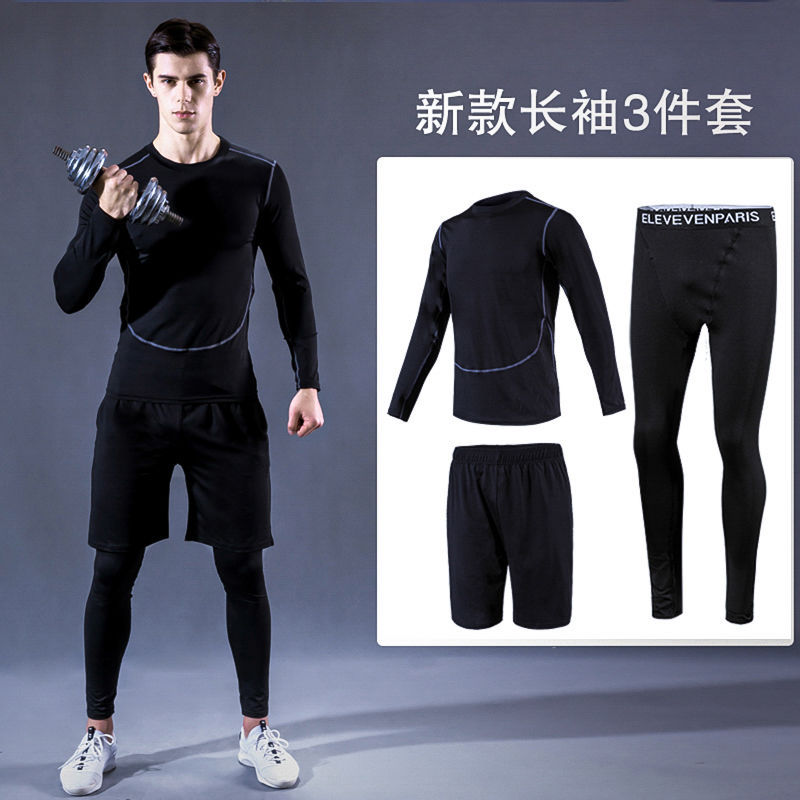 Мужской спортивный костюм для бега, весенне-осенняя одежда для бега, тренировочная одежда из трех предметов, тренировочная одежда, футболка с коротким рукавом, мужской костюм из пяти предметов