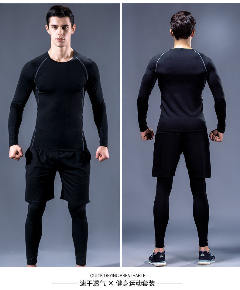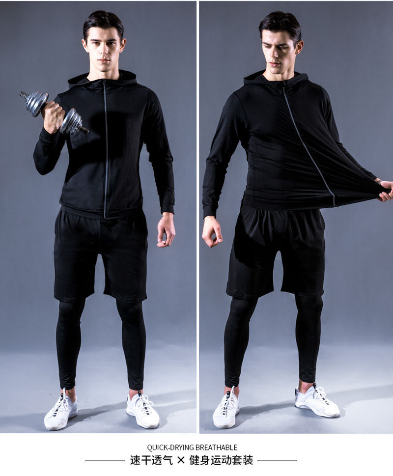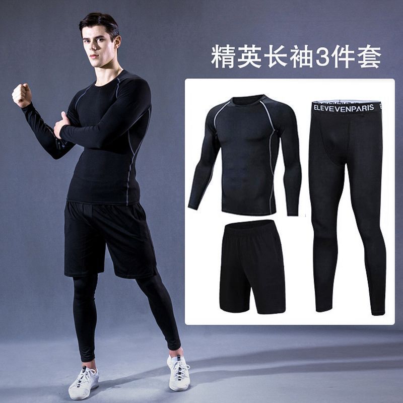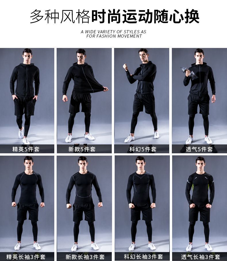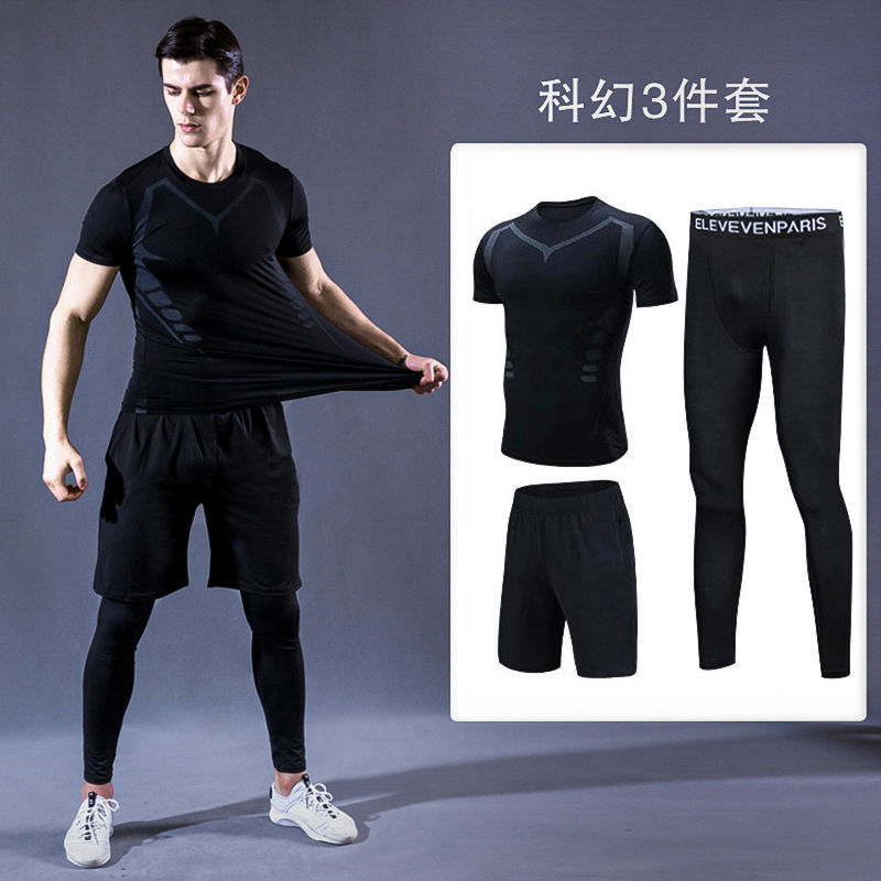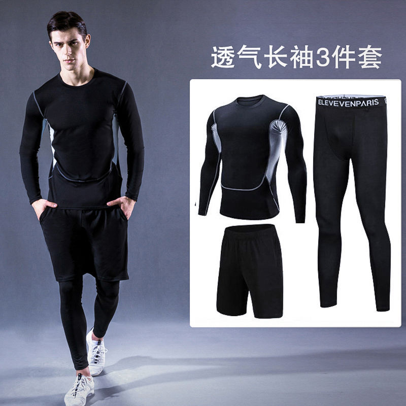 Мужской спортивный костюм для бега, весенне-осенняя одежда для бега, тренировочная одежда из трех предметов, тренировочная одежда, футболка с коротким рукавом, мужской костюм из пяти предметов