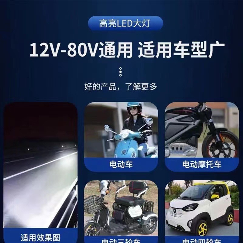 Свет для электромобиля, супер яркая светодиодная фара, аккумулятор, автомобильный прожектор, сильный свет, 12-80 В, универсальный автомобильный свет