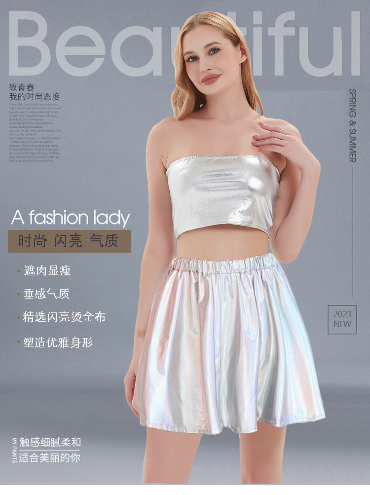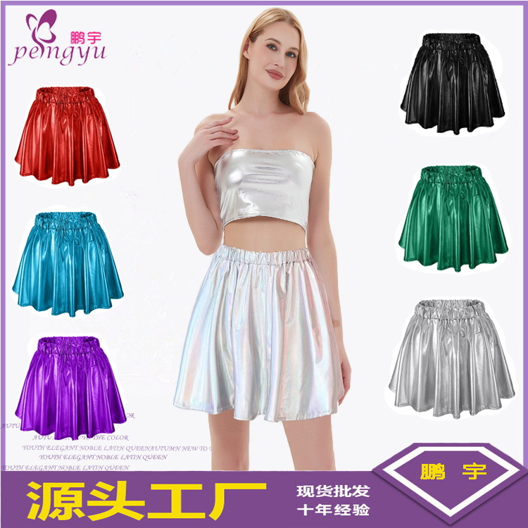 2025 новая трансграничная популярная большая распашная юбка, металлическая юбка, одежда для выступлений на сцене, плиссированная юбка с эластичной резинкой на талии для женщин