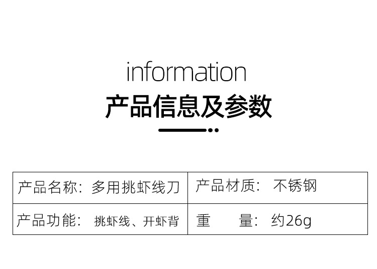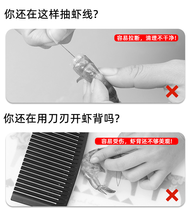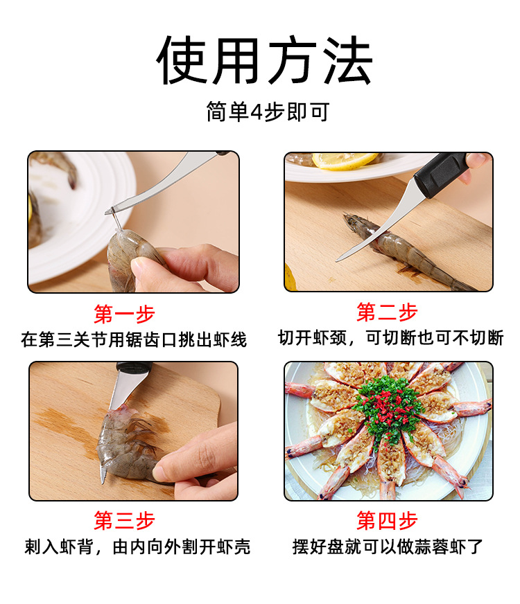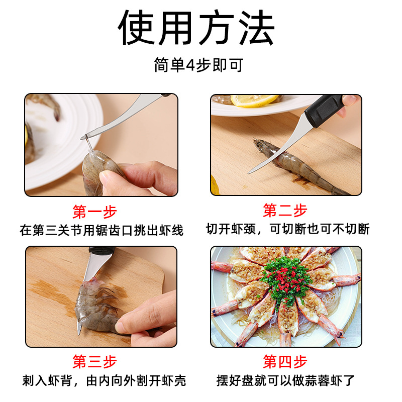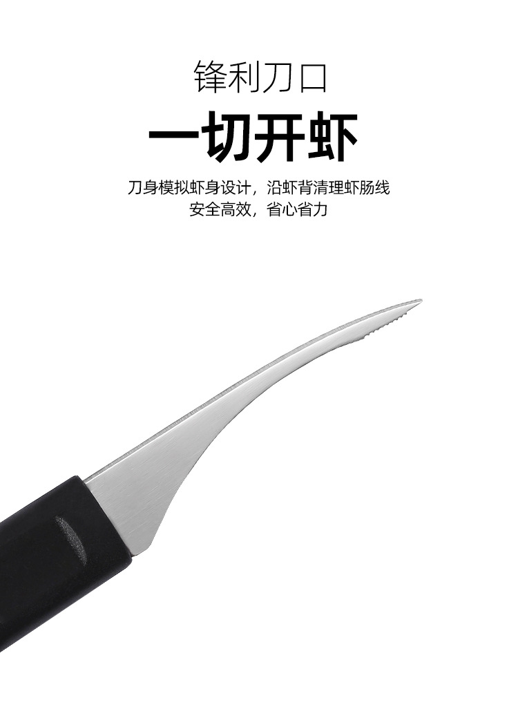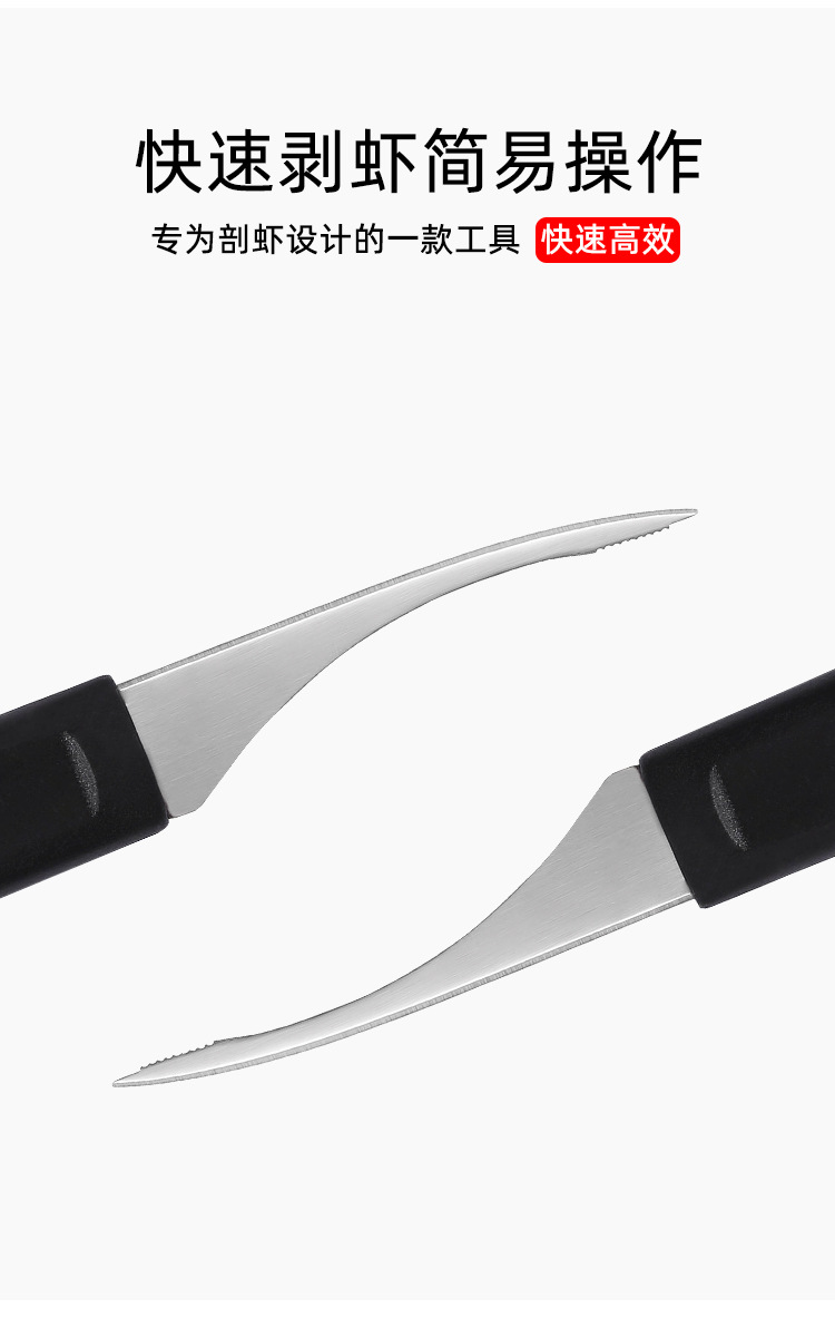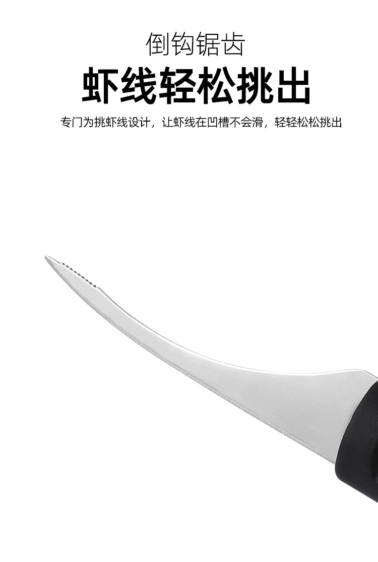[Нержавеющая сталь] двуглавый нож для креветок; [Черная ручка] Нож для креветочной нити с одной головкой