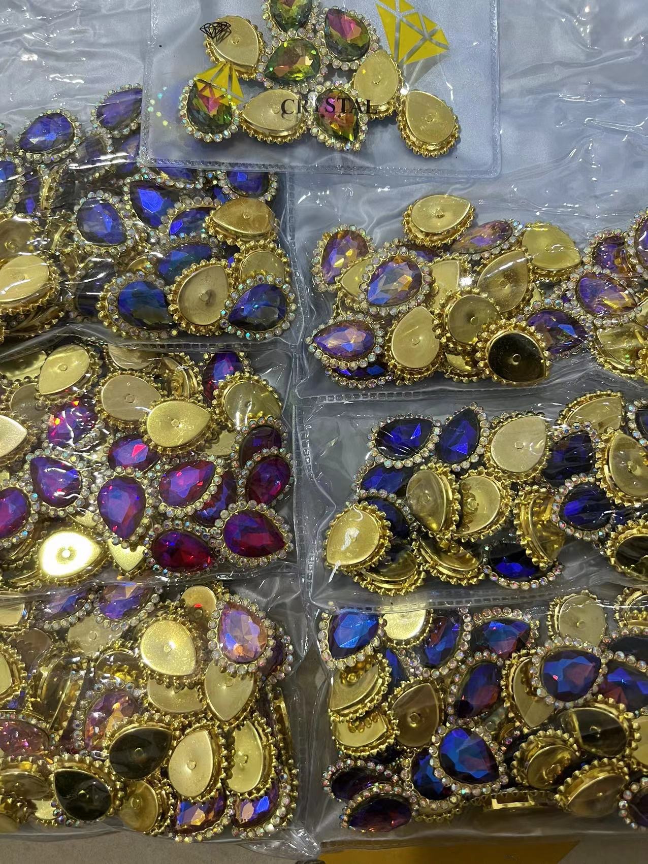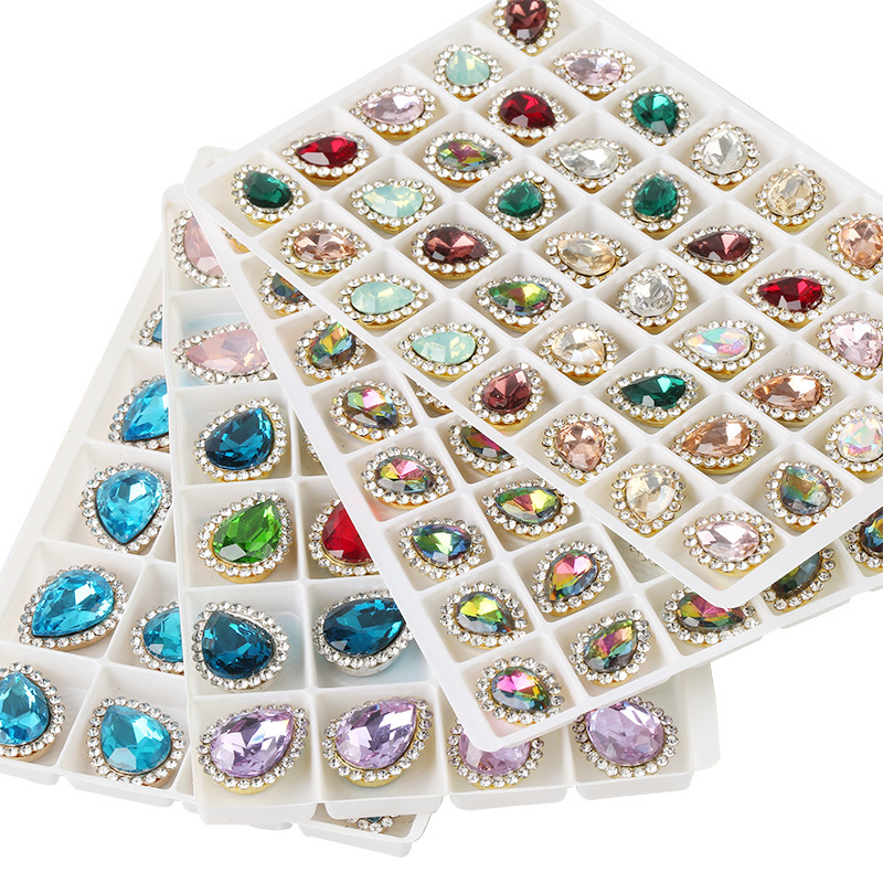 Оптовая Капля воды Алмазный Подсолнечник стеклянная алмазная пряжка Ручное шитье особой формы аксессуары с бриллиантовой короной одежда ювелирные аксессуары материал
