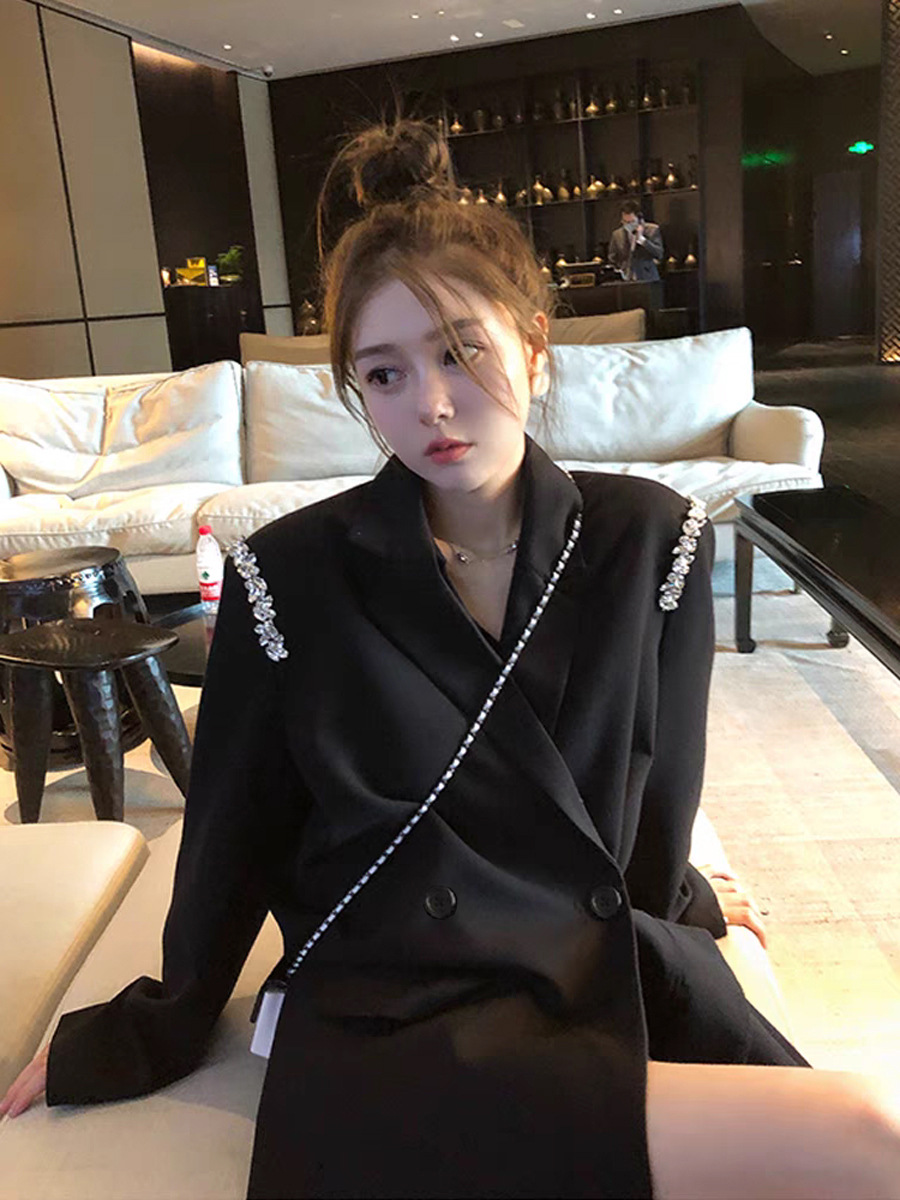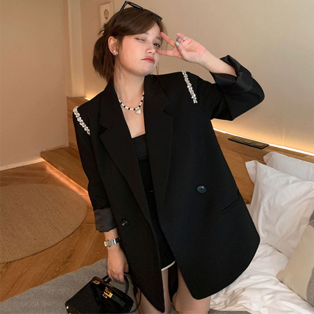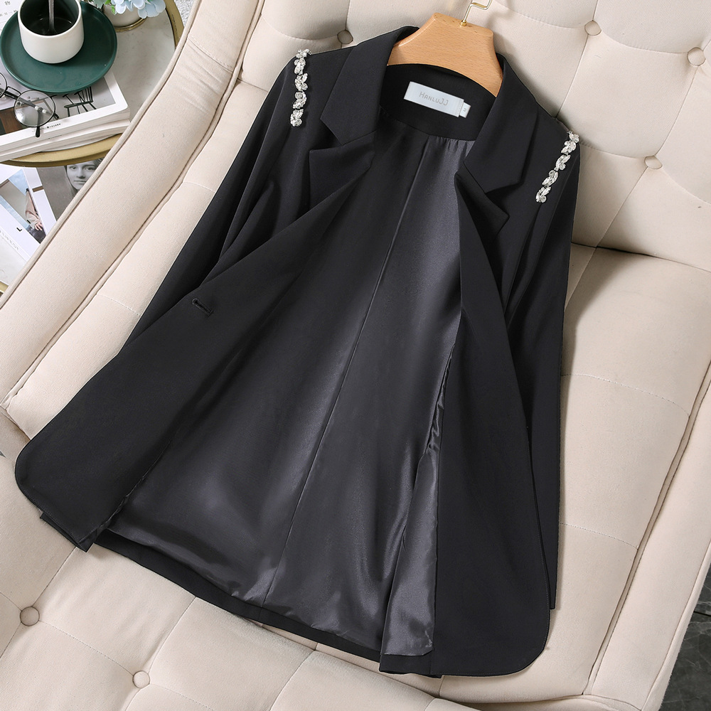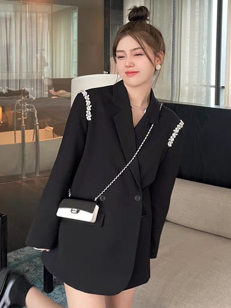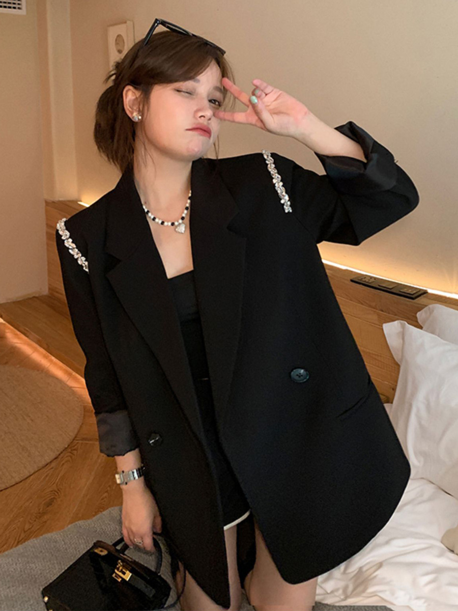 XZ131- Женский блейзер больших размеров, в корейском стиле, для полных женщин, свободный костюм с бисерной цепочкой 100kg