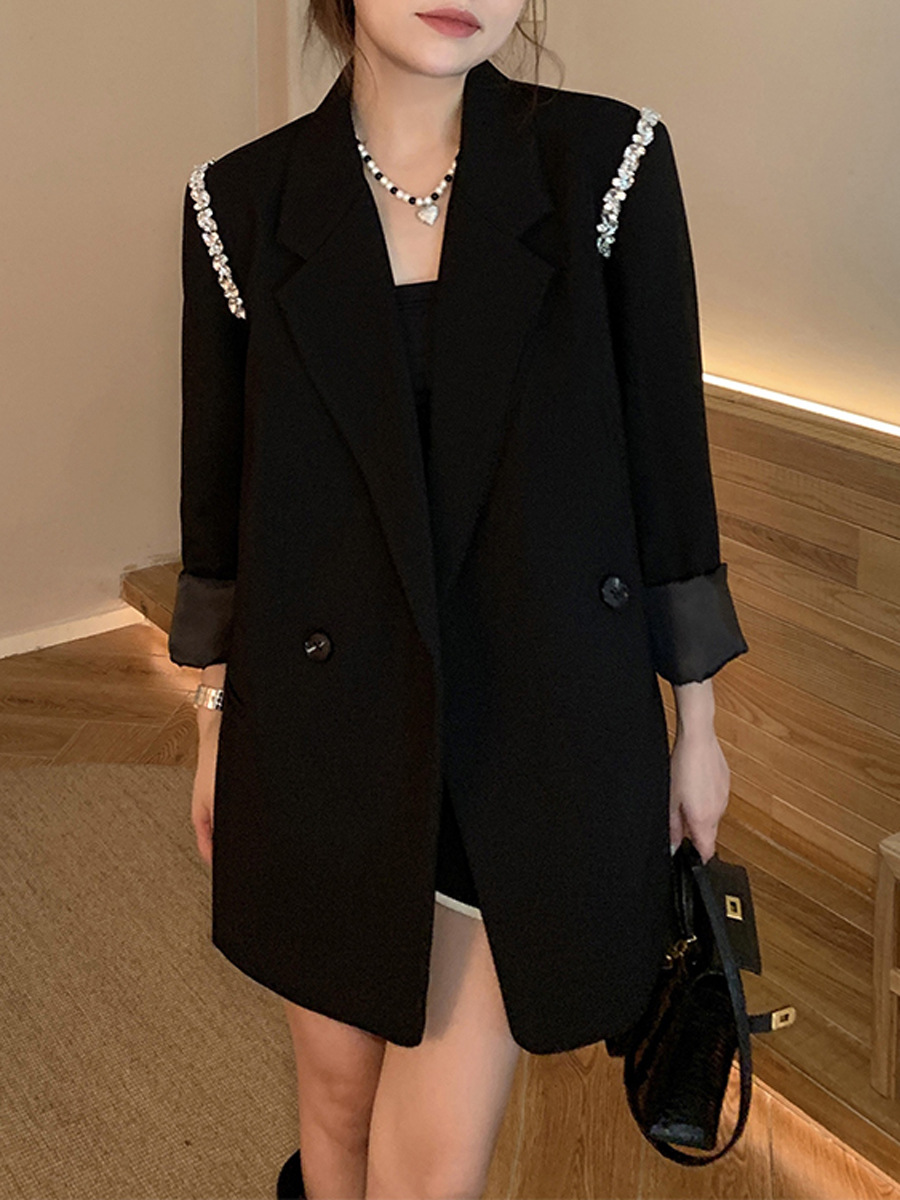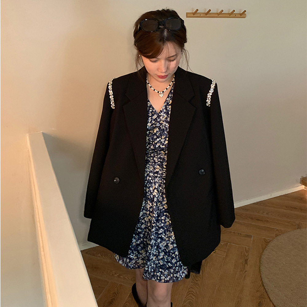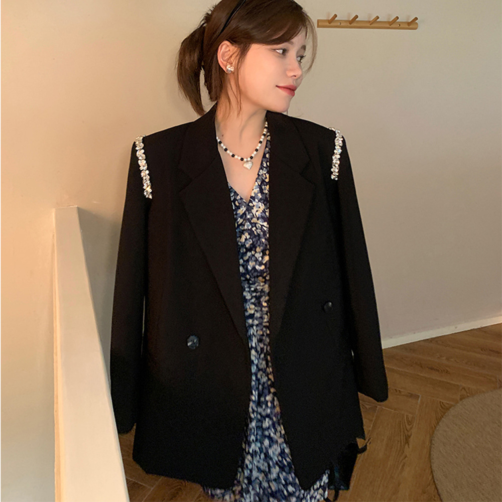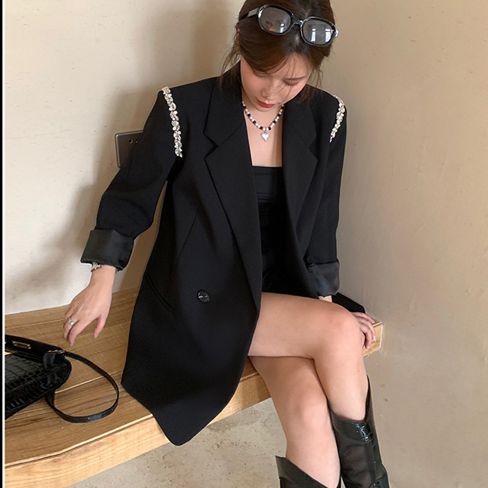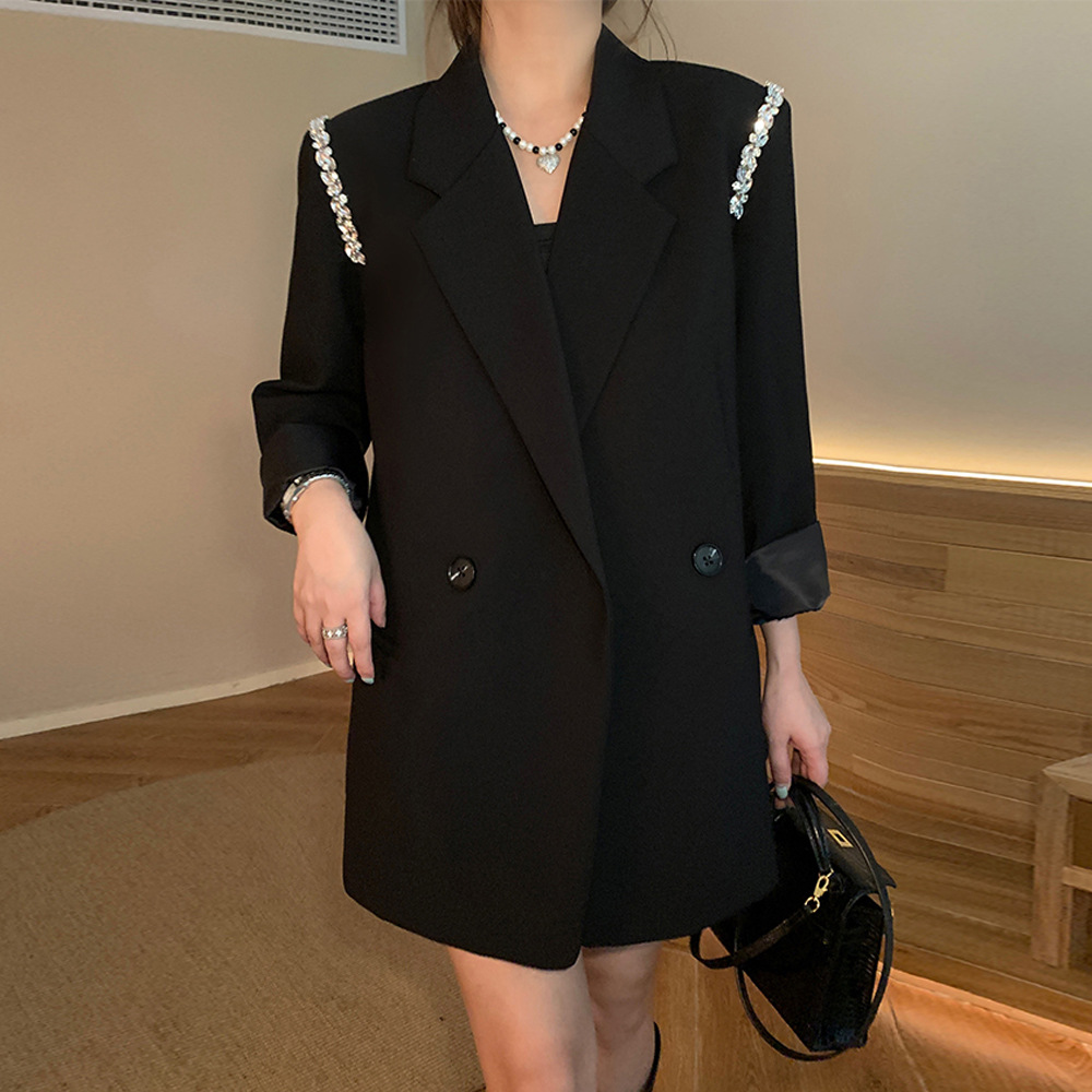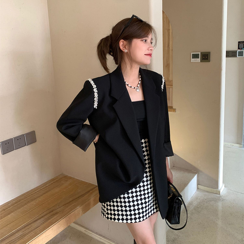 XZ131- Женский блейзер больших размеров, в корейском стиле, для полных женщин, свободный костюм с бисерной цепочкой 100kg