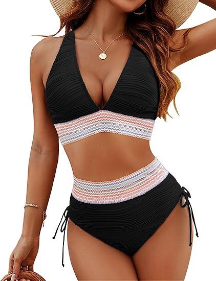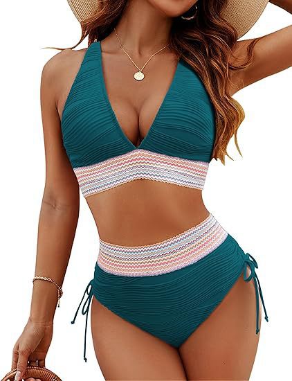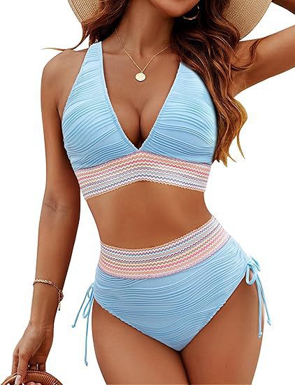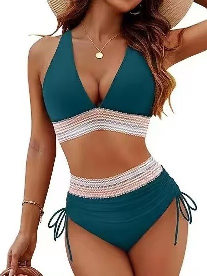 2024, женское бикини с высокой талией, отдельный костюм с v-образным вырезом, регулируемый купальник на шнурке, сбор Amazon, бестселлер, внешняя торговля