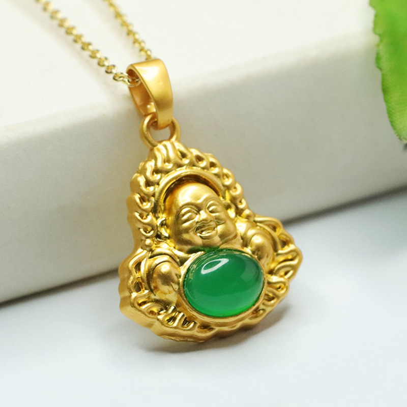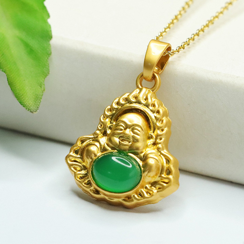 Aiyu Ice Emperor Зеленый халцедон Будды Кулон Агат Майтрейя Ожерелье Женщина Оптовая Продажа AY4011901