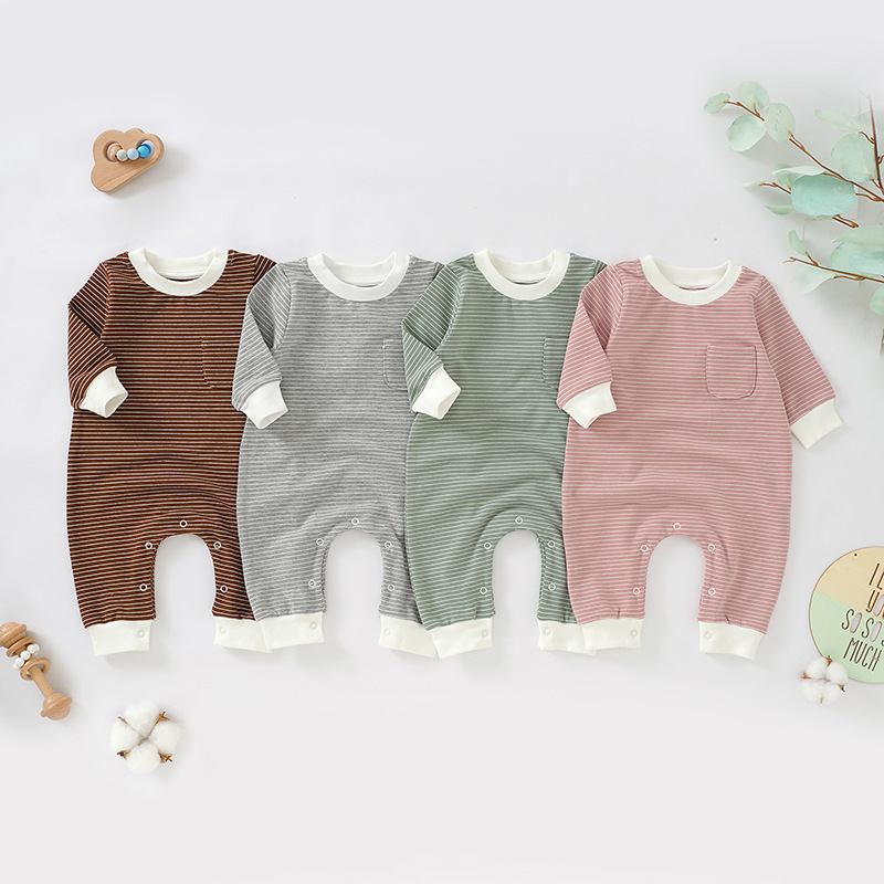 Детский комбинезон для новорожденных на весну и осень, трикотажный комбинезон для ползания, полосатый вязаный свитер, комбинезон из органического хлопка