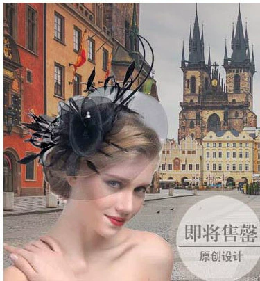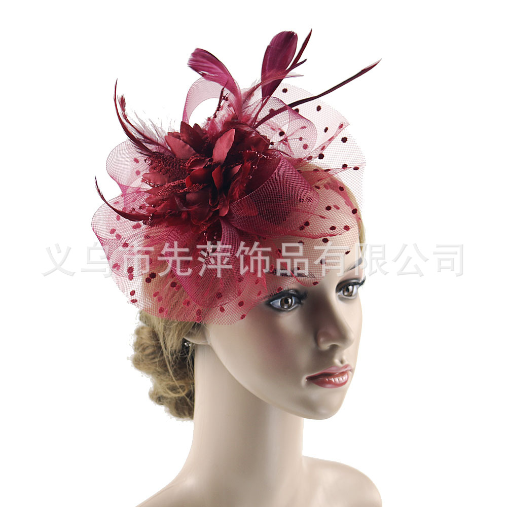 Amazon Новый головной убор с перьями европейский и американский свадебный цветок в горошек аксессуары для волос вечерние фото скачки котелок головной убор