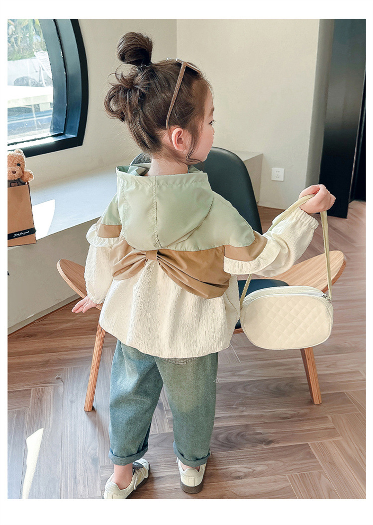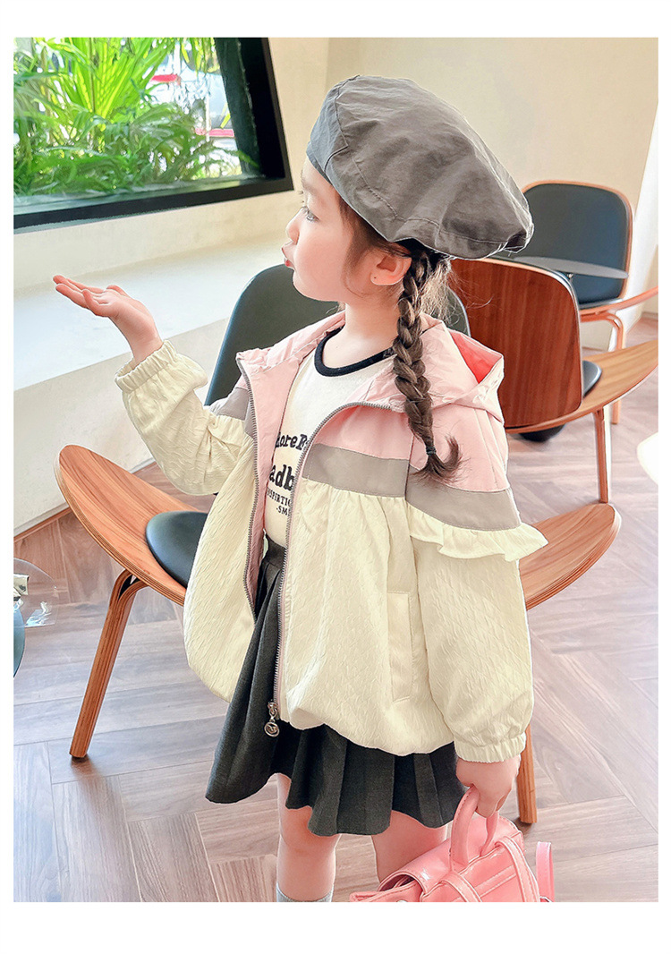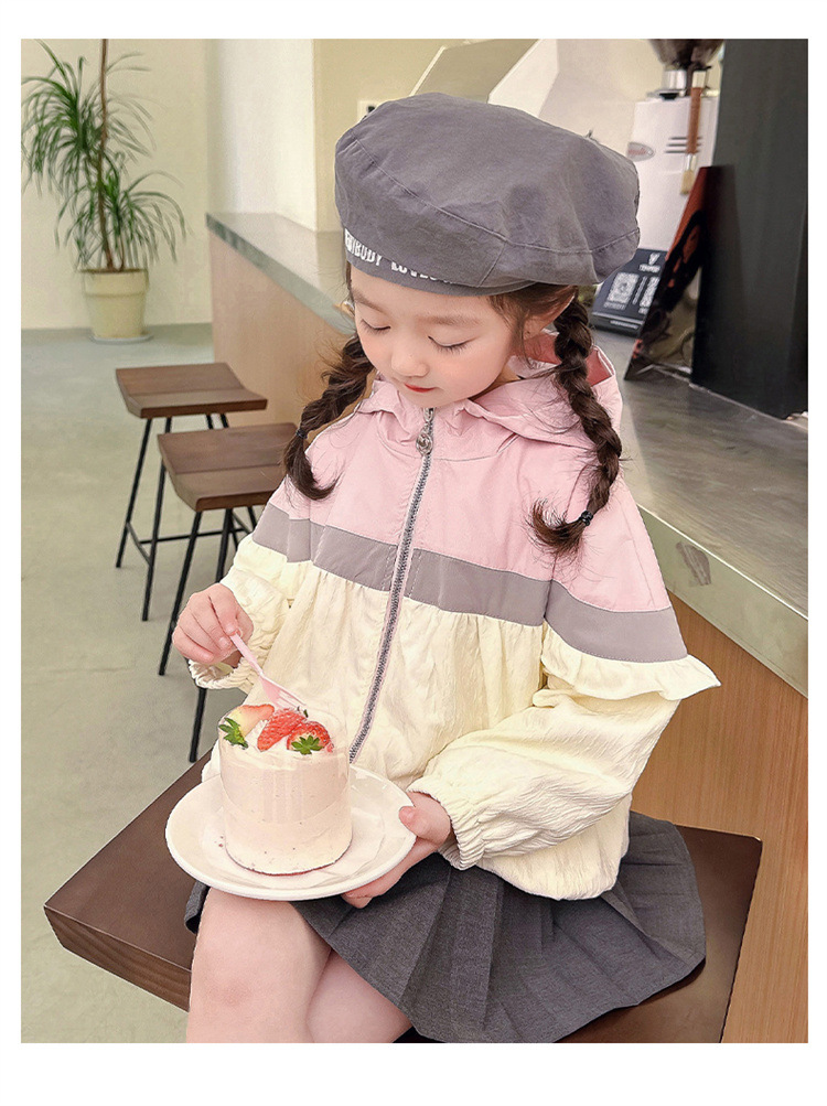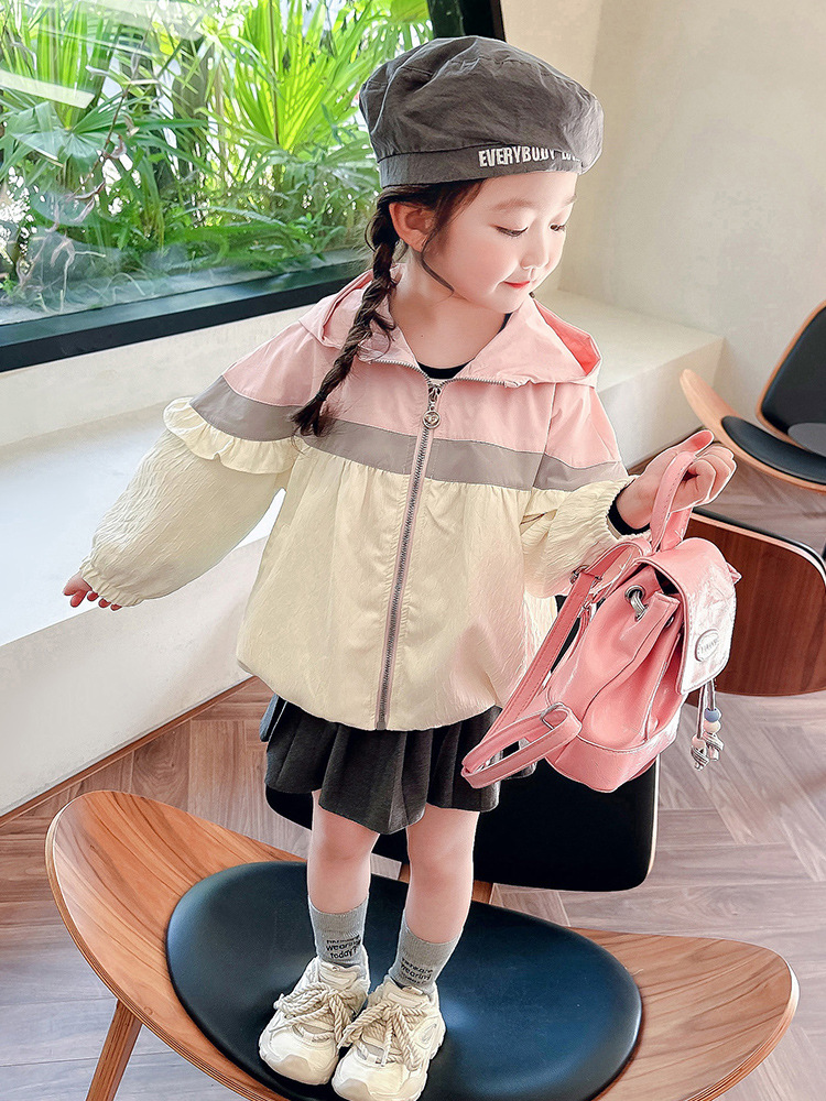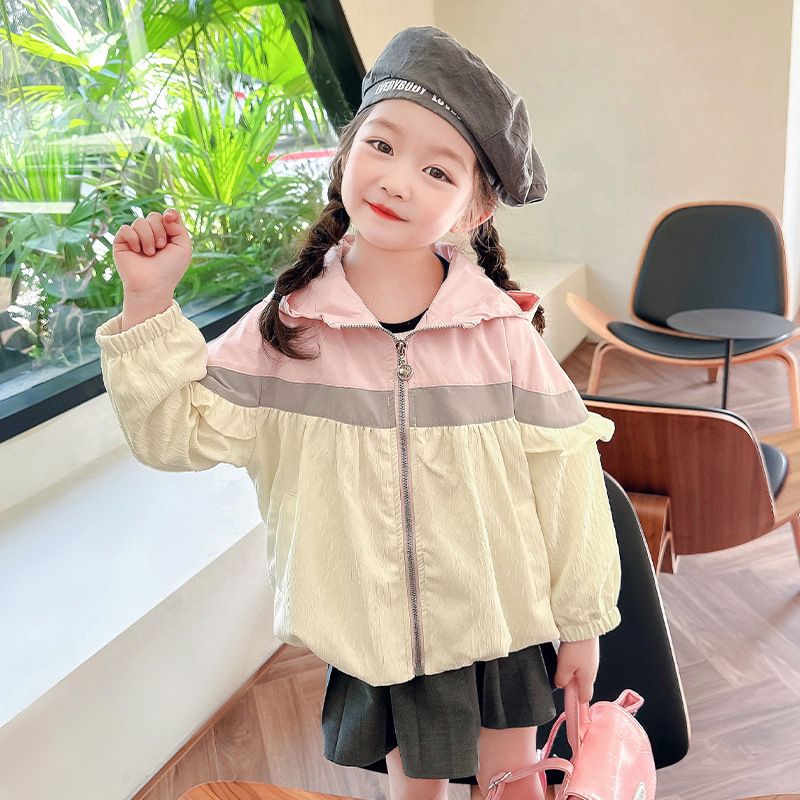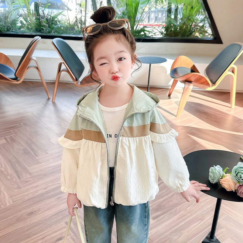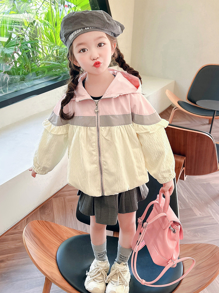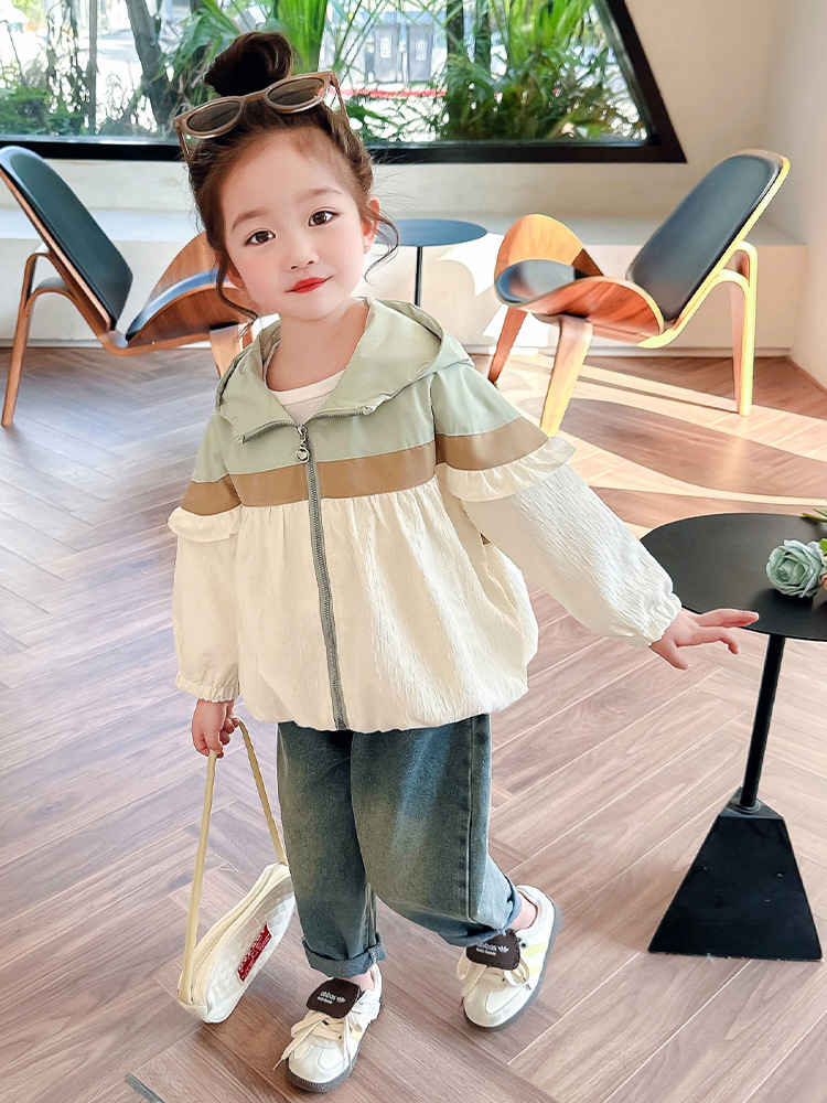 Ветровка с капюшоном для девочек, весна-осень 2025, новый стиль, детский повседневный стиль, длинный рукав, осень