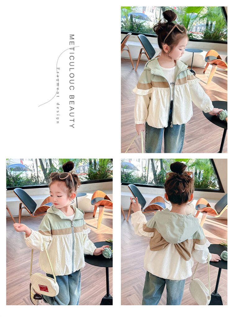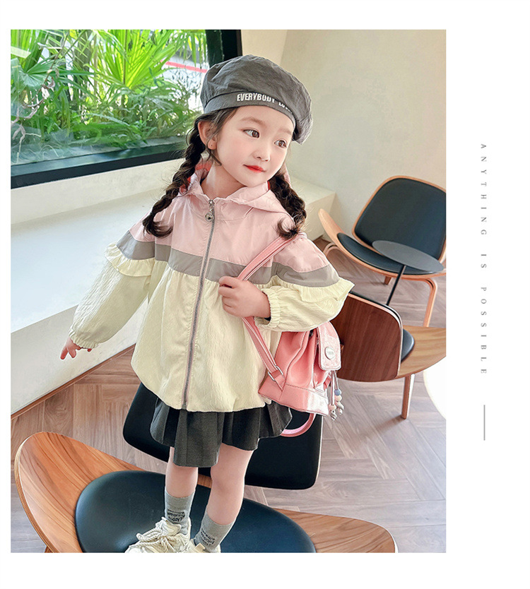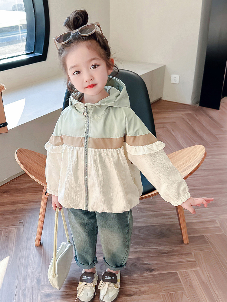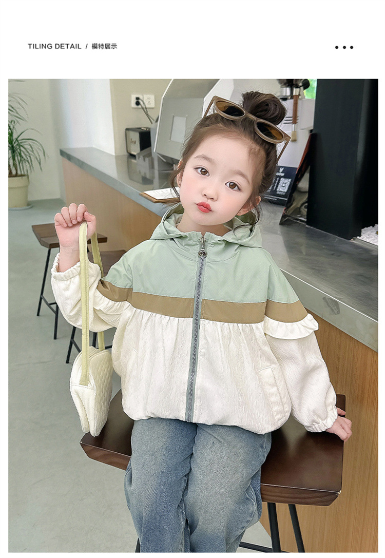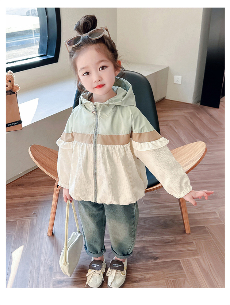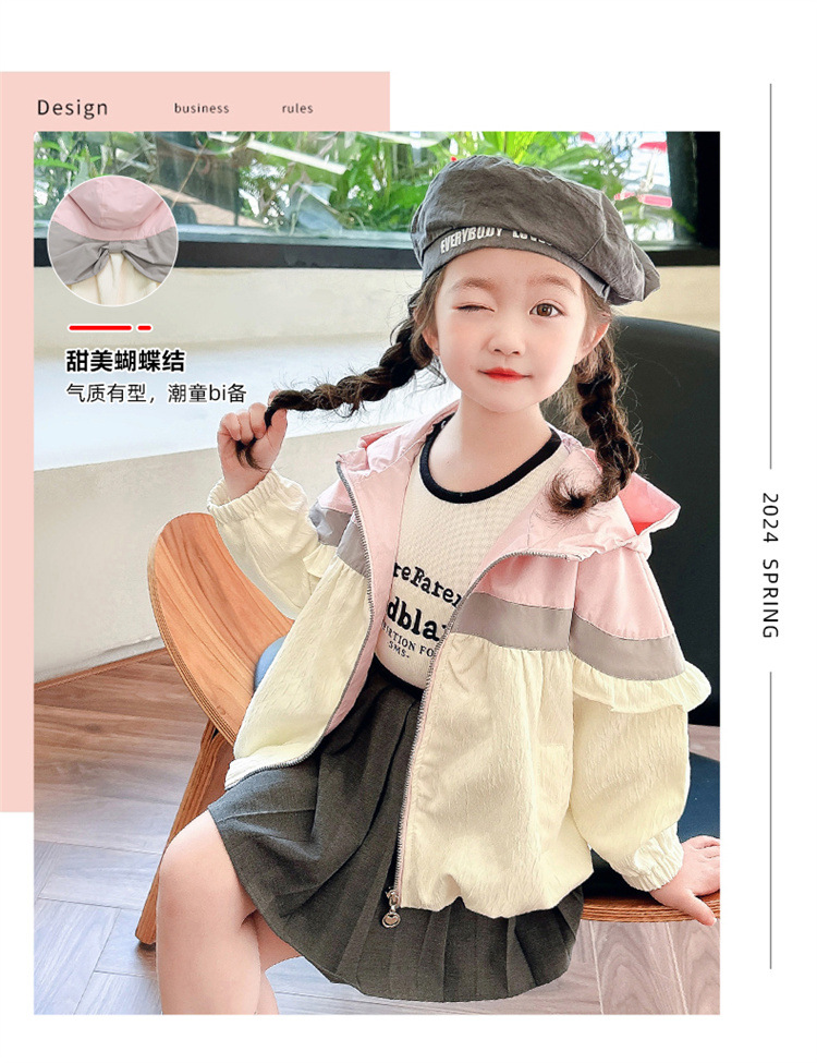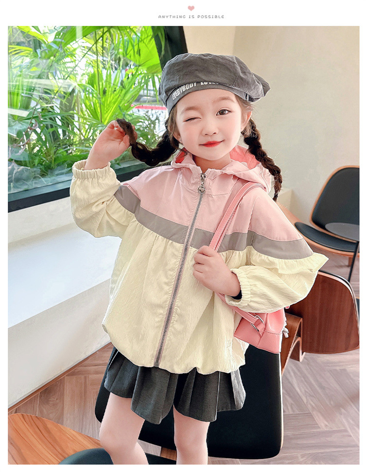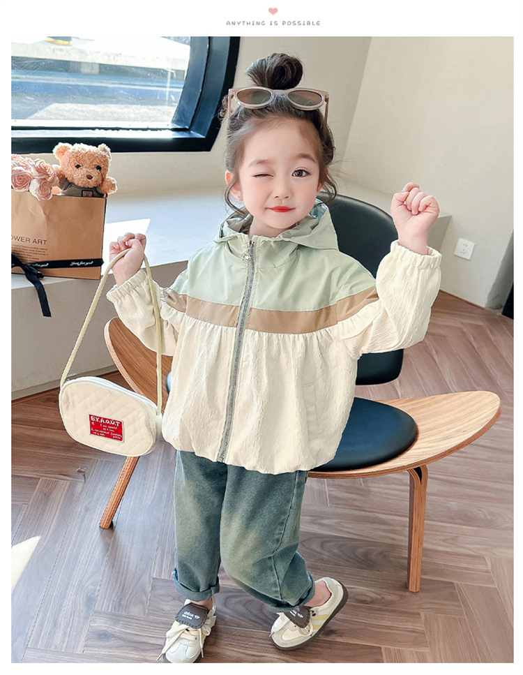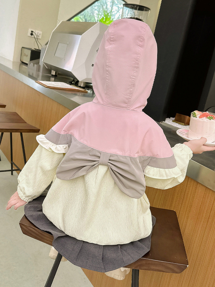 Ветровка с капюшоном для девочек, весна-осень 2025, новый стиль, детский повседневный стиль, длинный рукав, осень