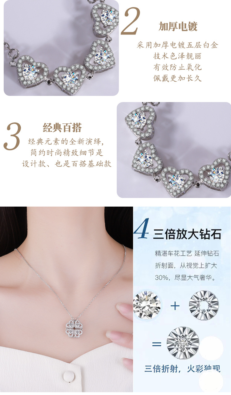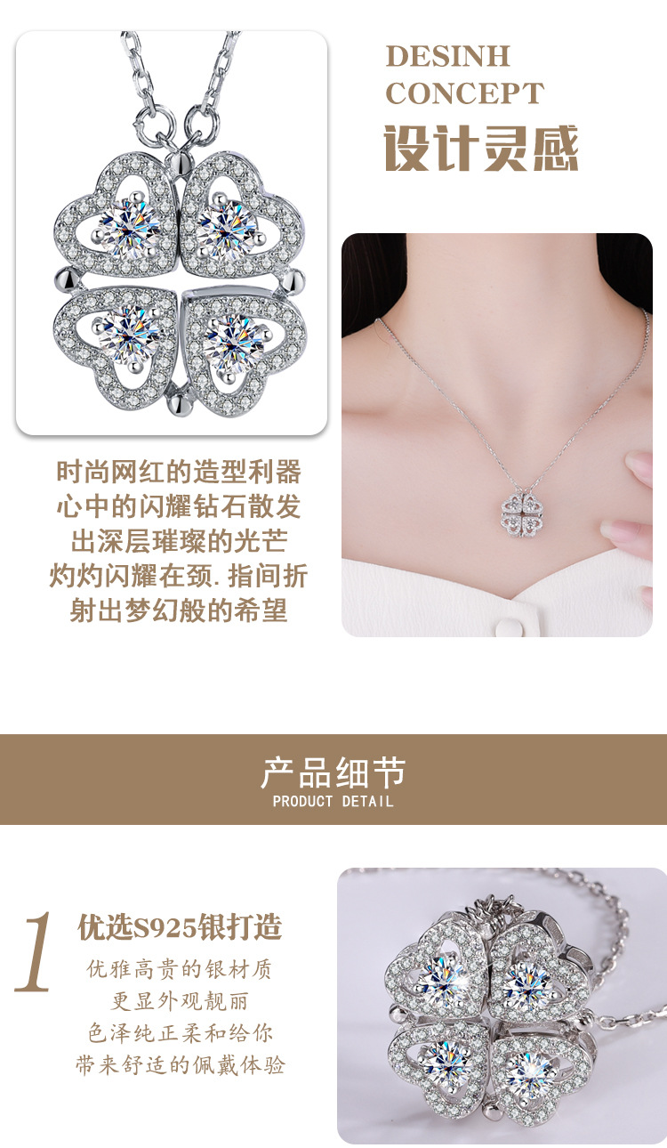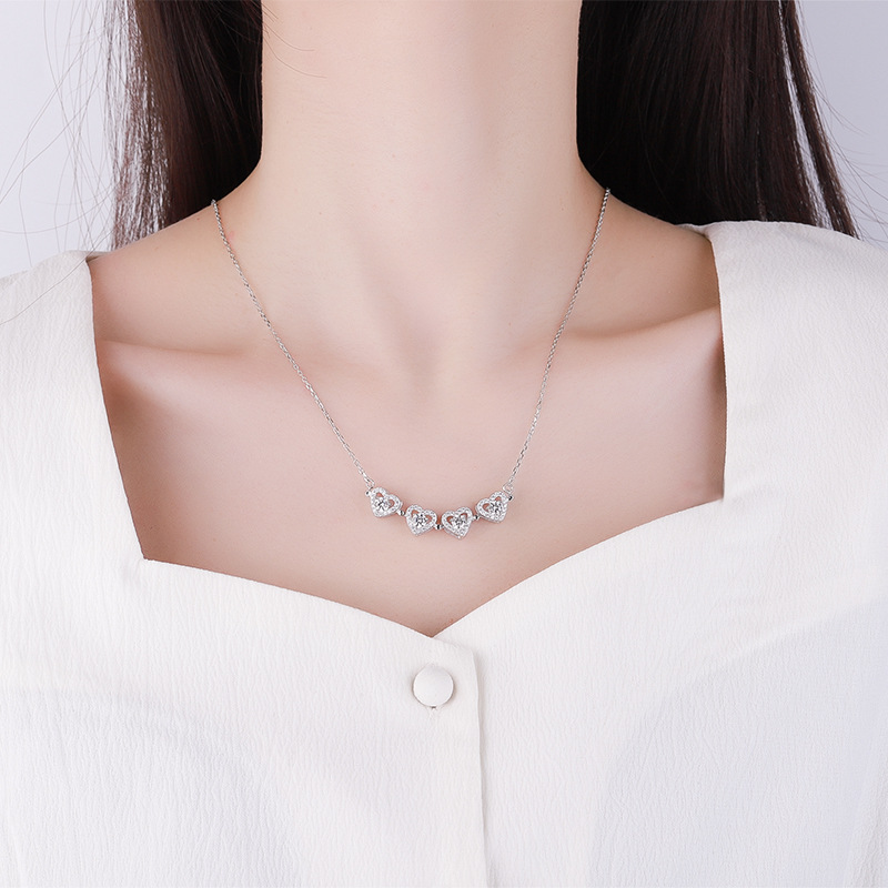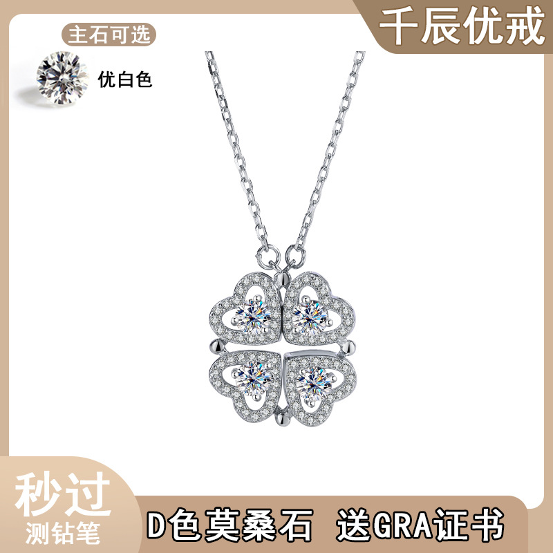 S925 стерлингового серебра любовь одна из двух носящих ожерелье женщины высокого уровня Mo Sang Diamond кулон новогодняя цепочка свитера ювелирные изделия оптом