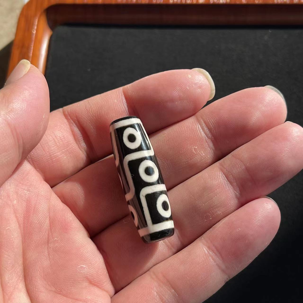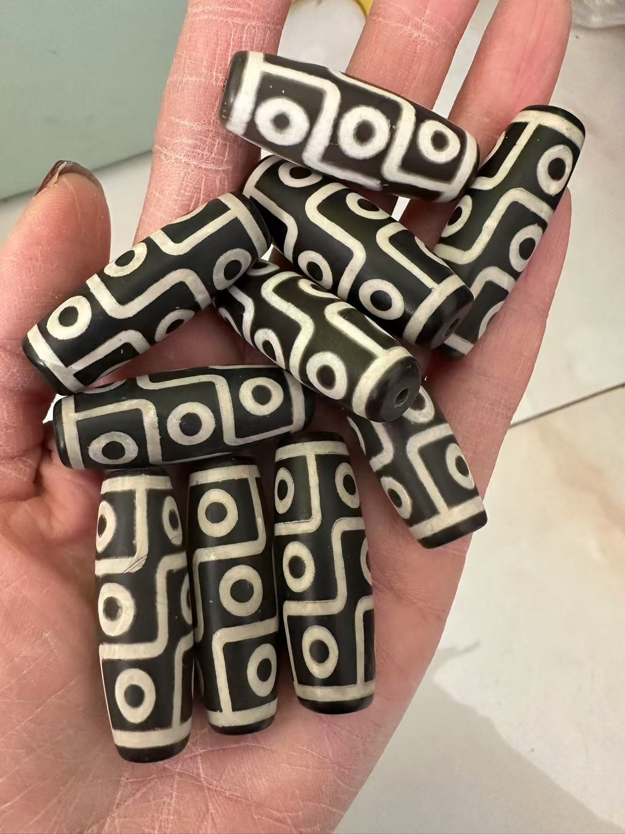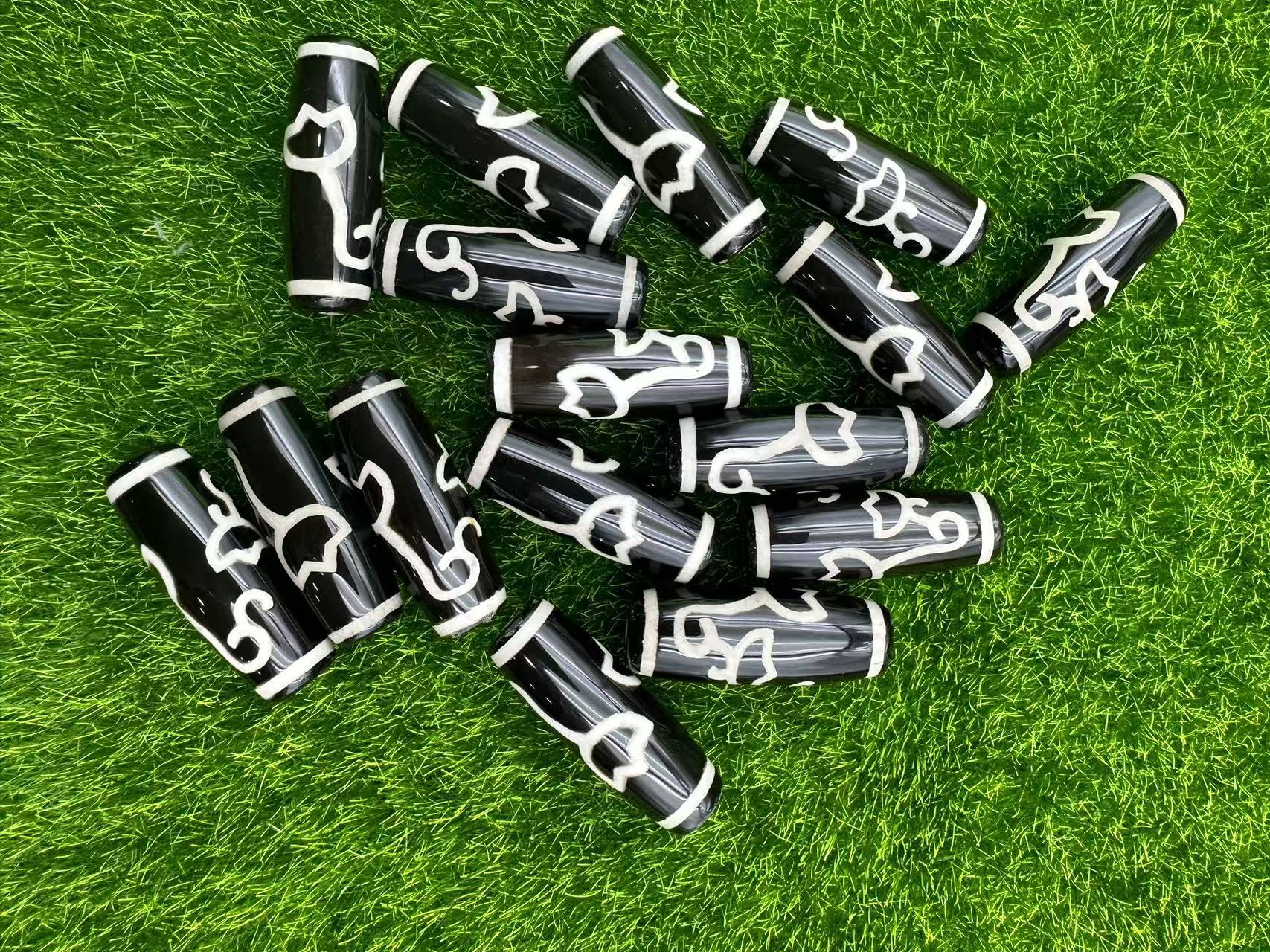 Черно-белые бусины дзи девять глаз 40*14; Коричневый; черный лотос; матовые девять глаз
