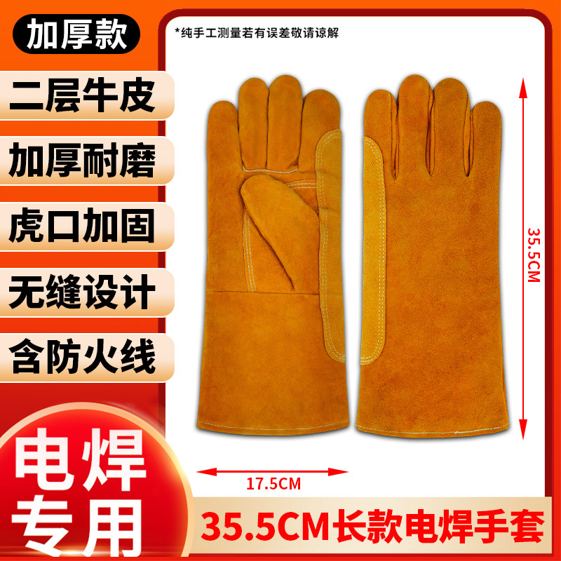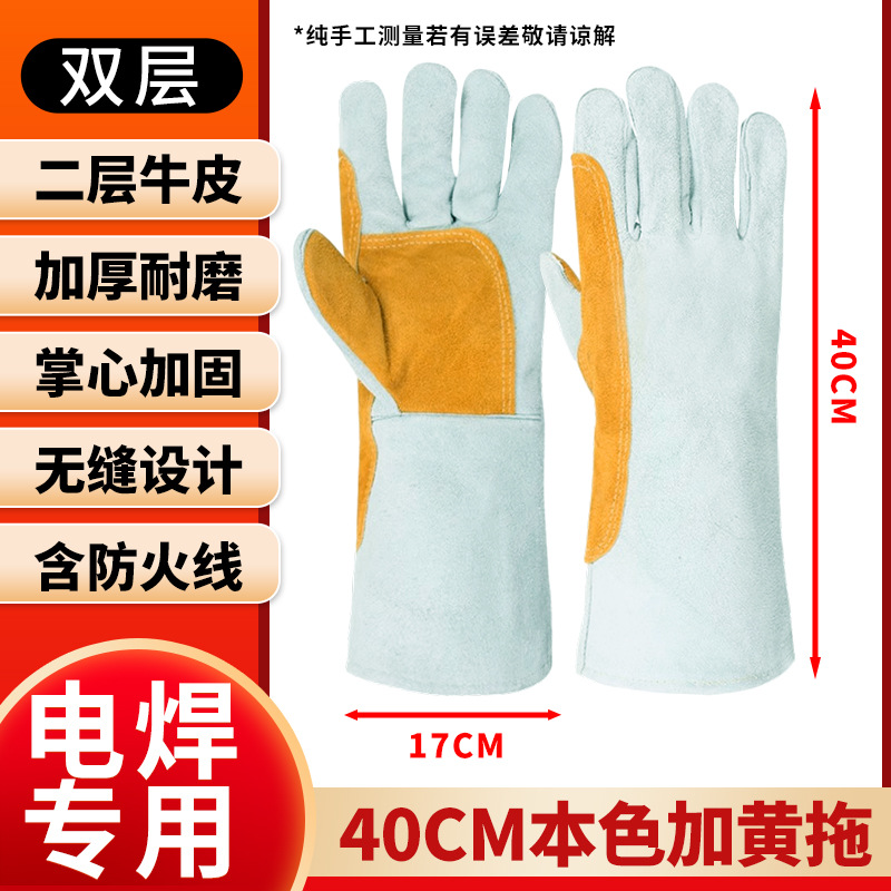 Длинные двухслойные перчатки сварщика из воловьей кожи, износостойкие, устойчивые к ожогам, высокотемпературная теплоизоляция, утолщенная защита труда, специально для сварщика