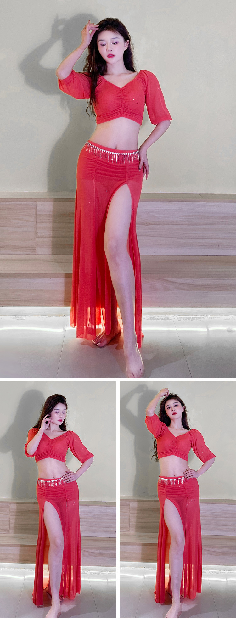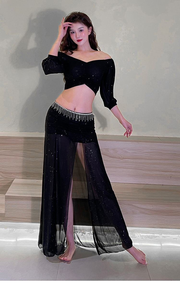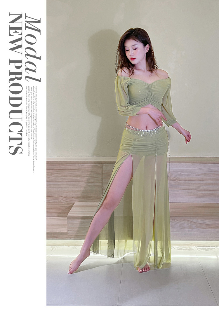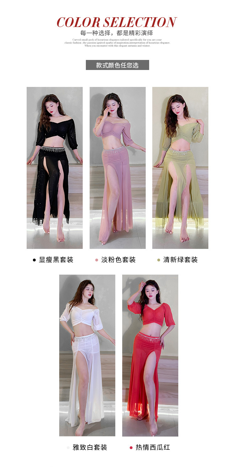 2024 новый весенне-летний костюм для занятий Танцем Живота Костюм больших размеров для похудения восточных танцев выступление сетчатый топ
