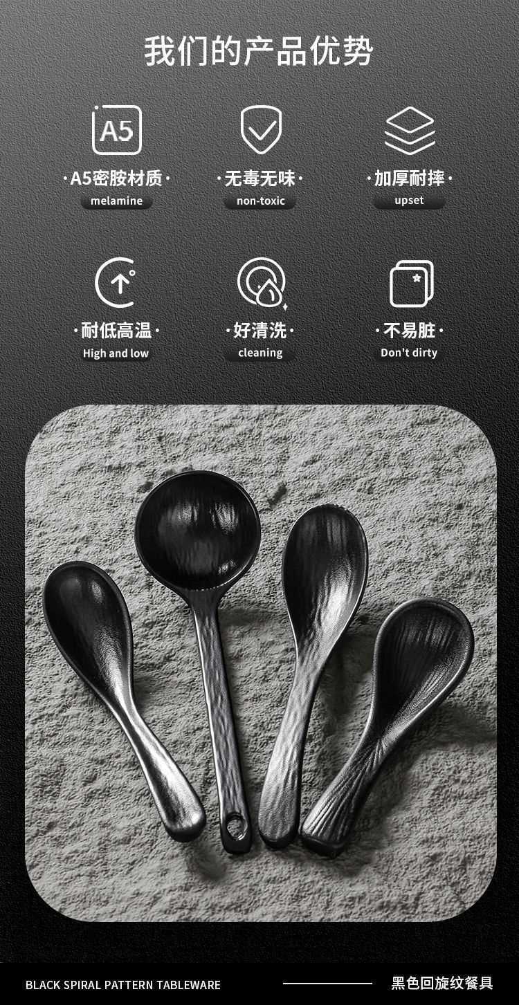 Меламиновая ложка с длинной ручкой, пластиковая ложка для каш, десертов, ресторанная ложка, имитация фарфоровой ложки, матовая ложка, ложка с узором в виде спиралей
