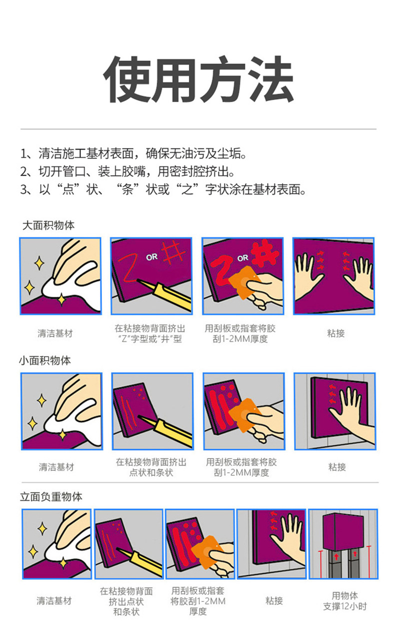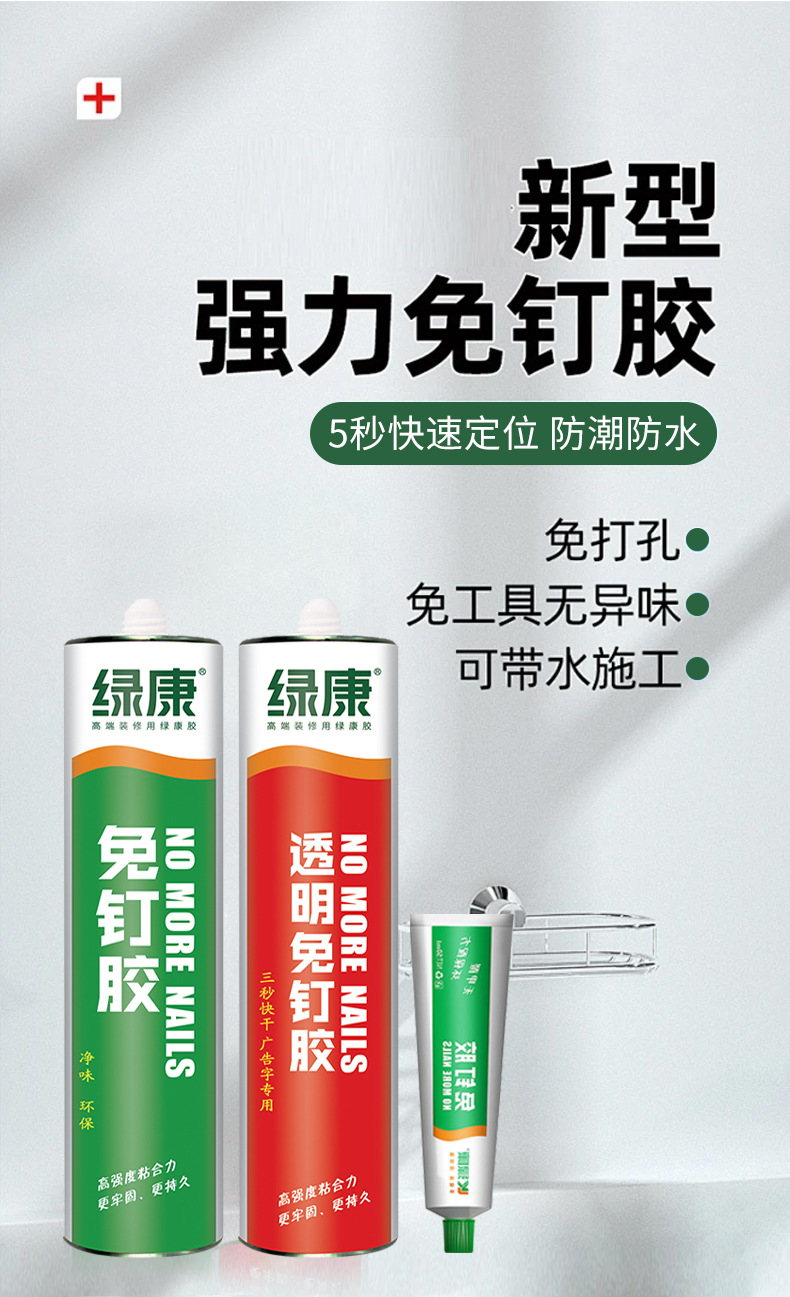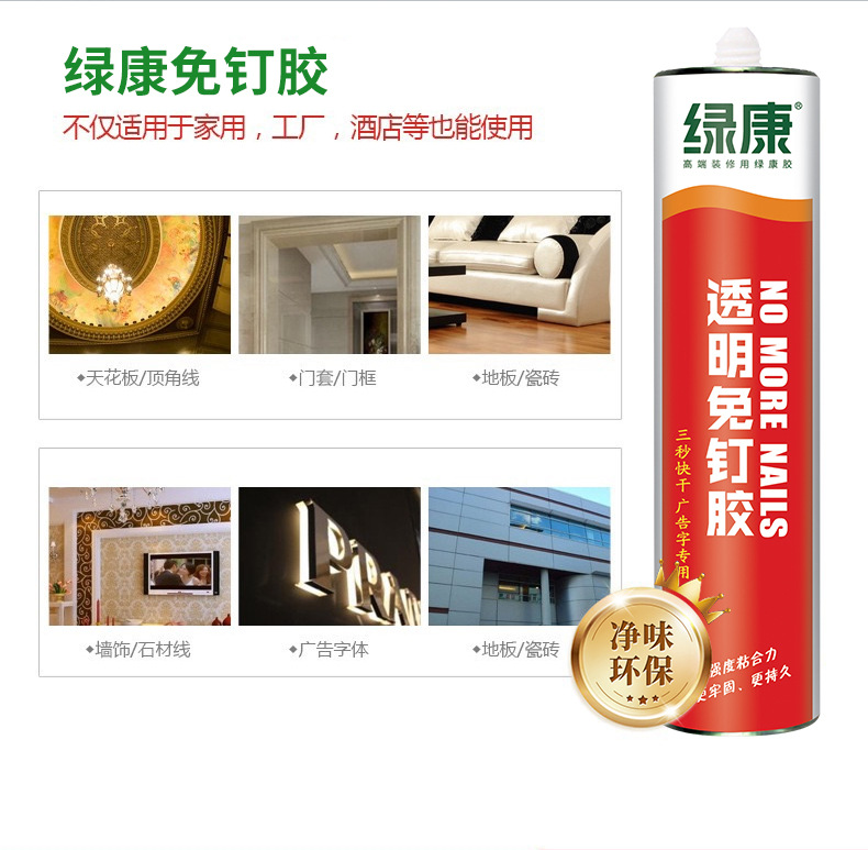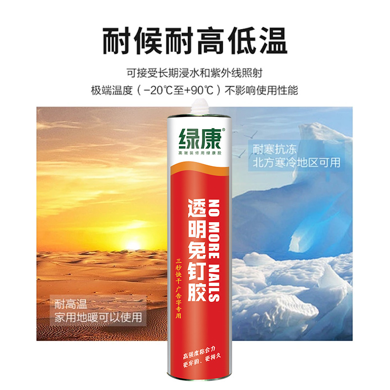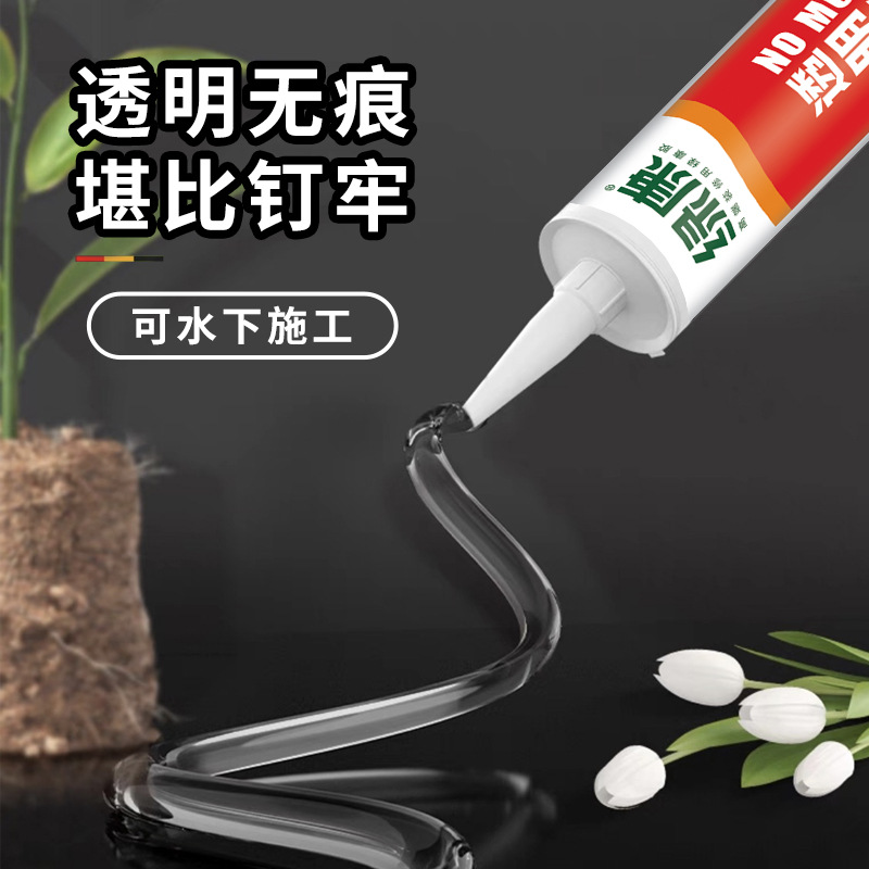 Клей для стекла, плинтусов, зеркал и плитки, прозрачный, структурный, без гвоздей, быстросохнущий, с усиленной рекламной формулировкой.