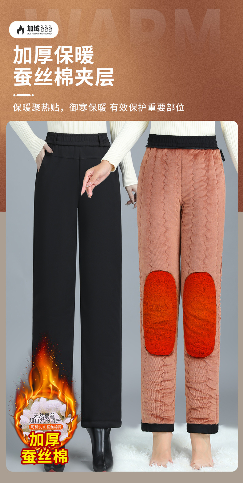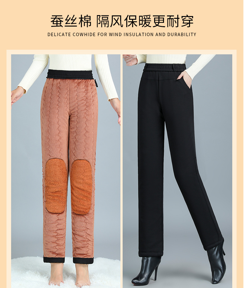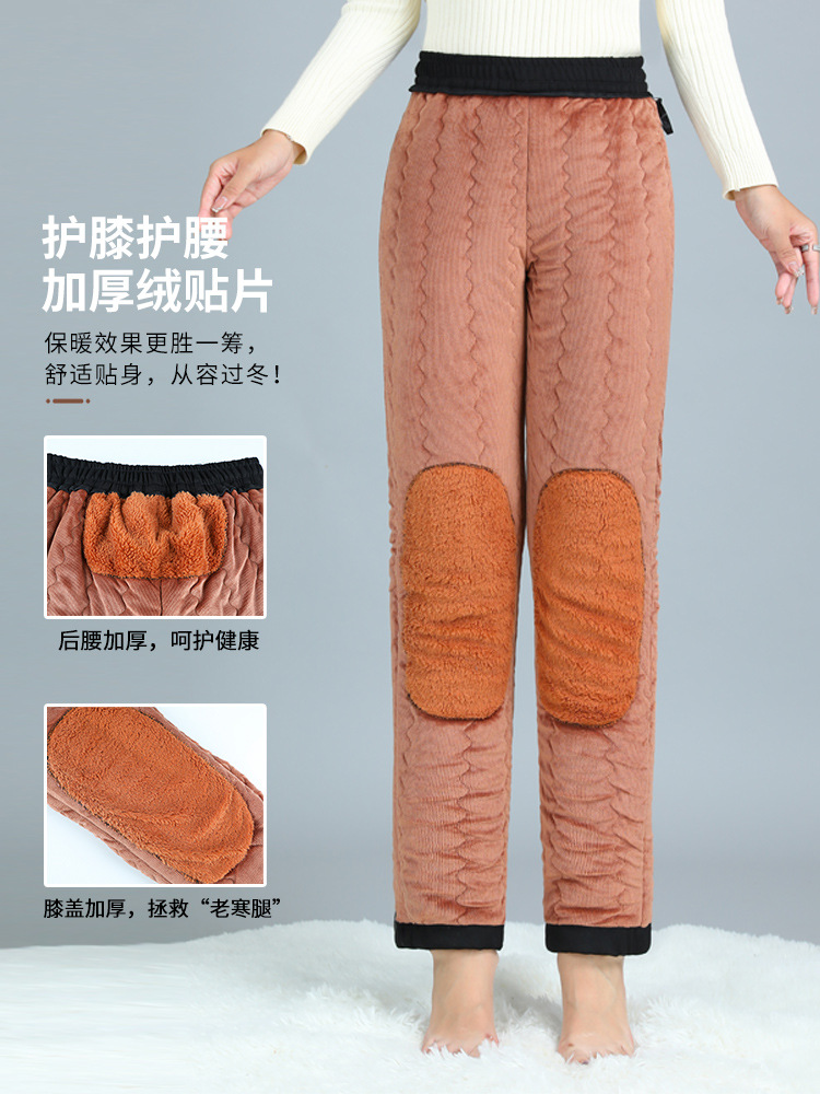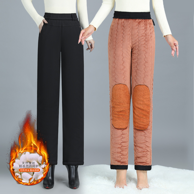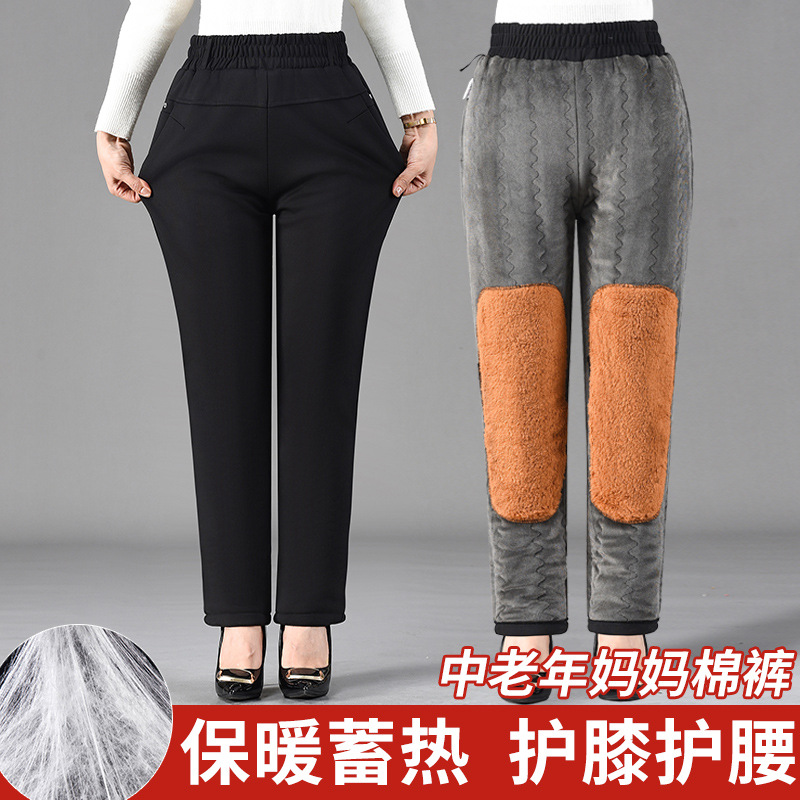 Брюки из хлопка для мамы, женские брюки большого размера, бархатные утолщенные наколенники, бабушкина одежда среднего и пожилого возраста, осенние и зимние брюки прямого кроя, свободные.