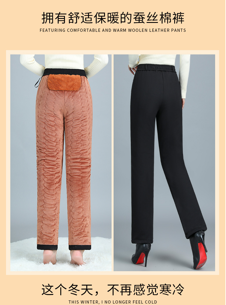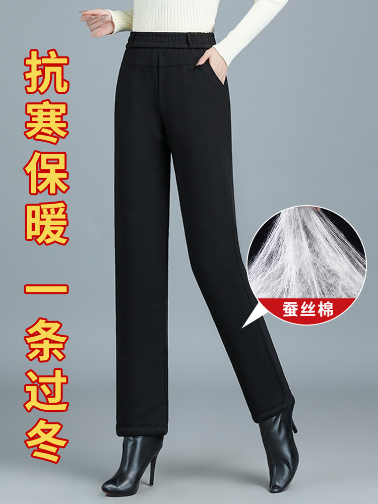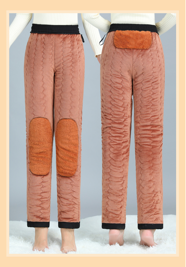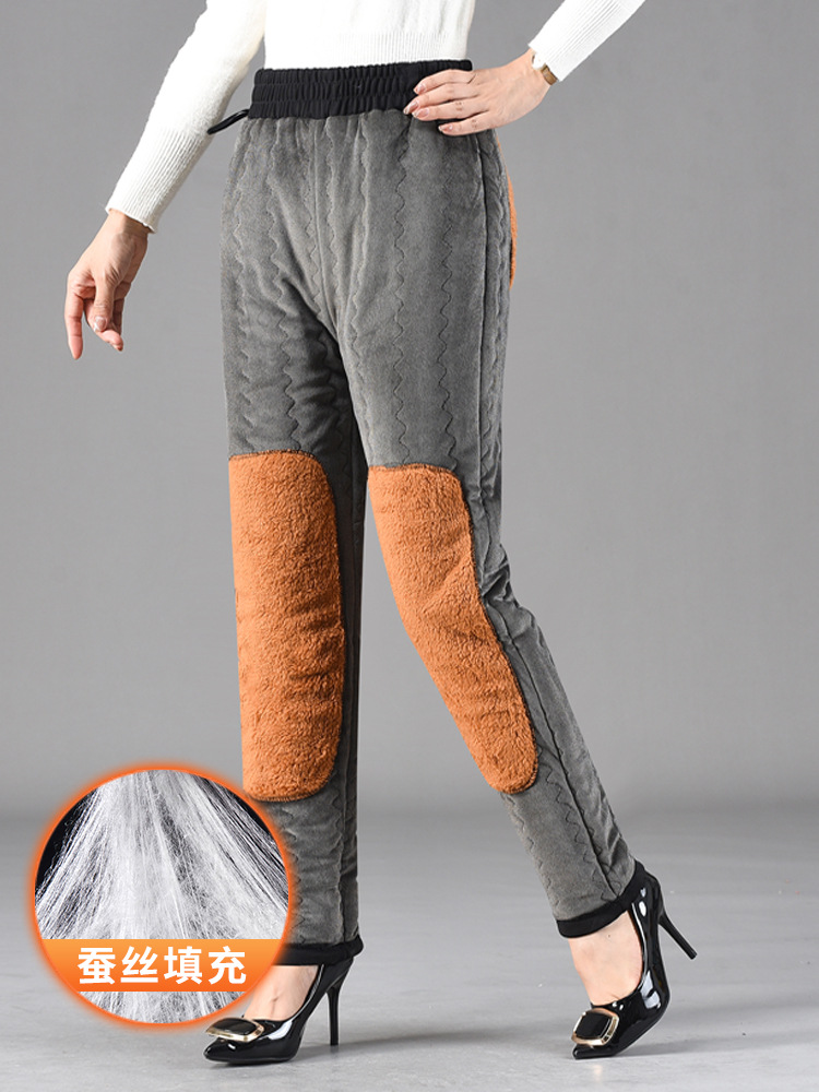 Брюки из хлопка для мамы, женские брюки большого размера, бархатные утолщенные наколенники, бабушкина одежда среднего и пожилого возраста, осенние и зимние брюки прямого кроя, свободные.