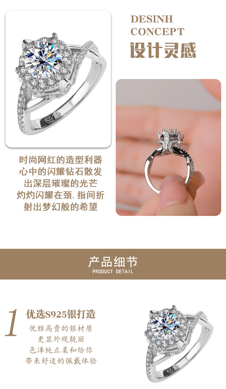 Трансграничное Специально для S925 стерлингового серебра Мосанг бриллиантовое кольцо королевского поместья