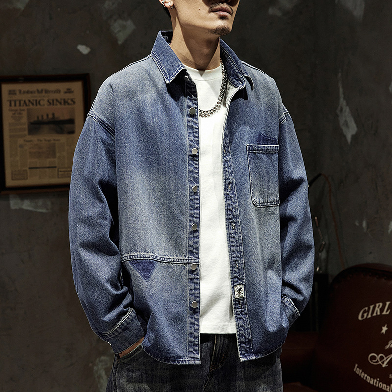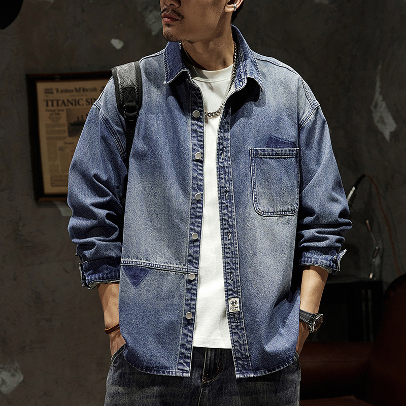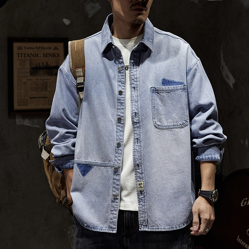 807 | Мужская Весенняя новая японская джинсовая рубашка больших размеров в стиле ретро, Мужская свободная универсальная Модная брендовая рубашка, куртка для мужчин