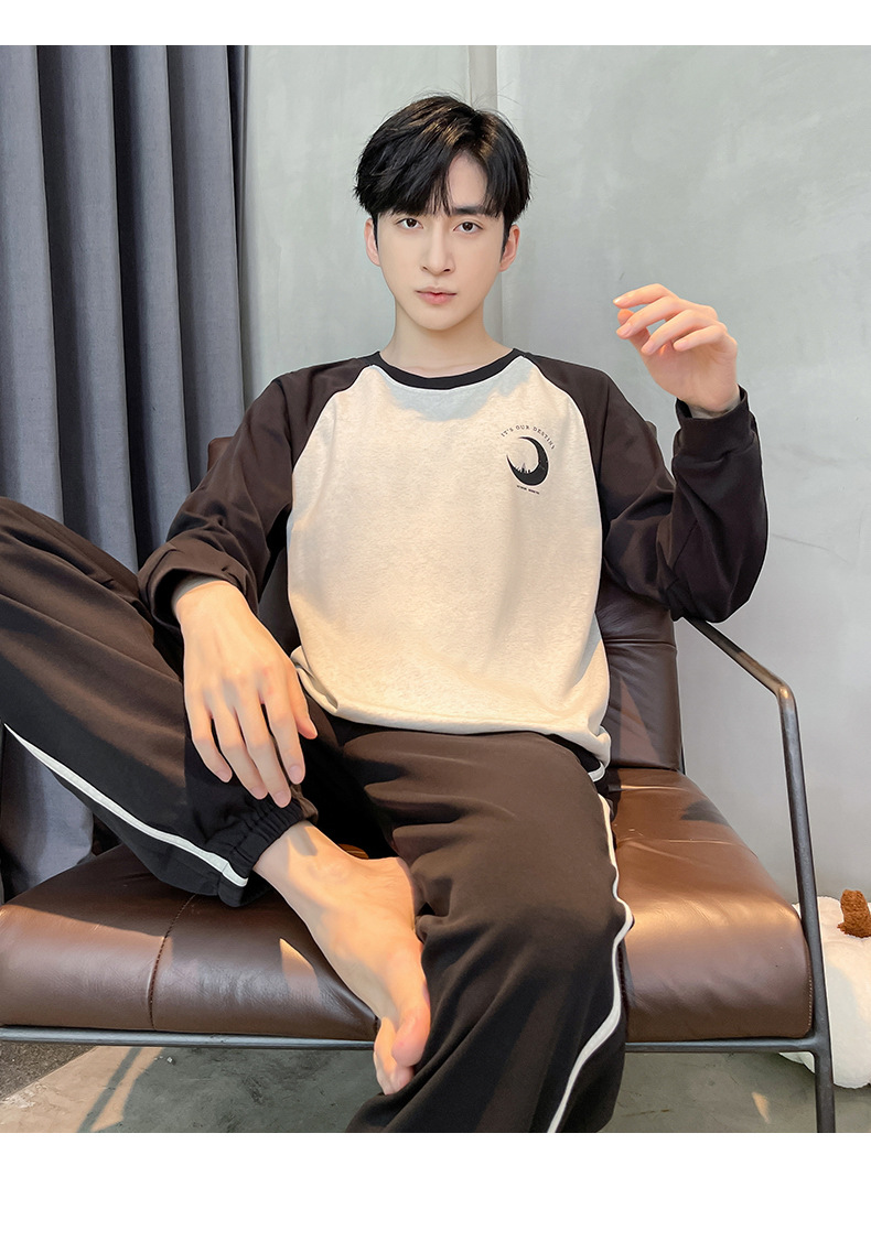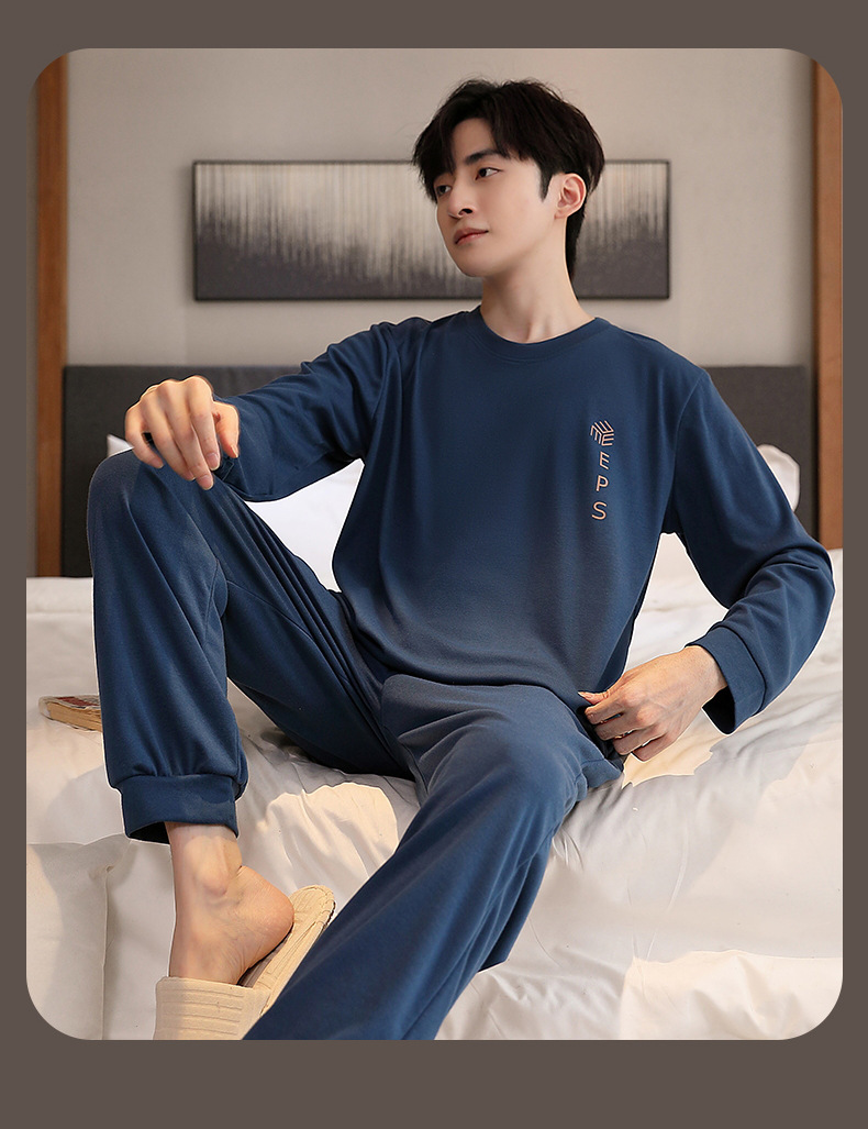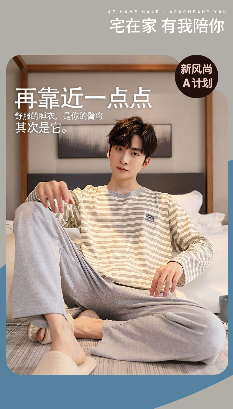 Пижама Мужская весенне-осенняя хлопковая Молодежная Повседневная Верхняя одежда с длинными рукавами, осенняя Домашняя одежда, костюм больших размеров оптом