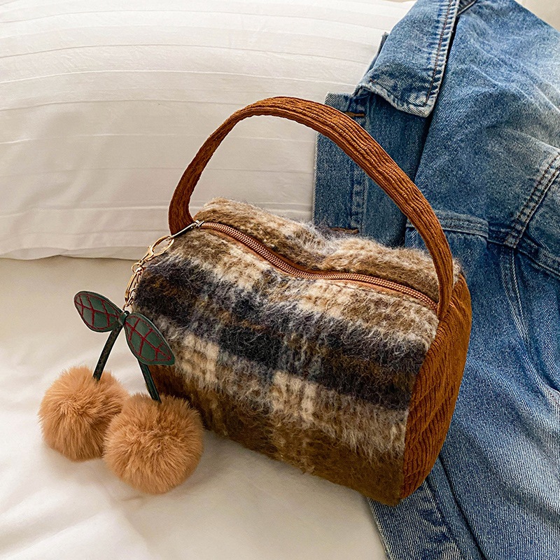 Сумка Женская рабочая Маленькая Сумочка Милая пушистая пуховая сумка с узором гусиная лапка Сумочка ручная переноска косметичка
