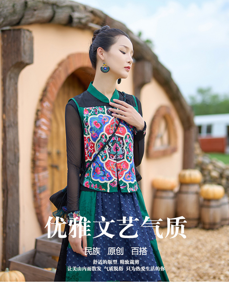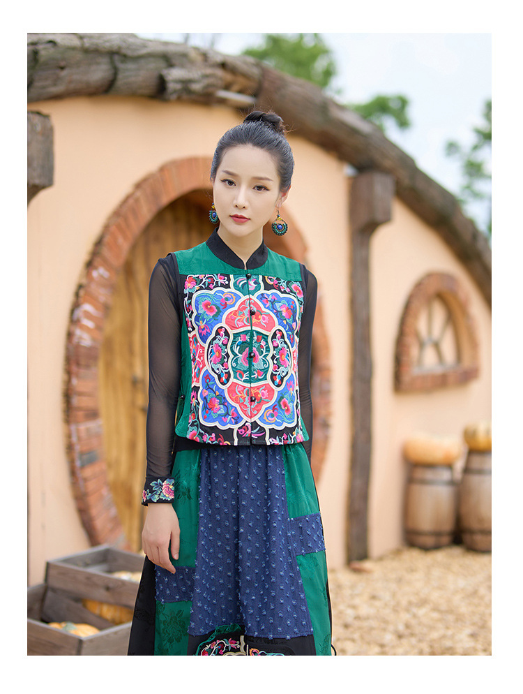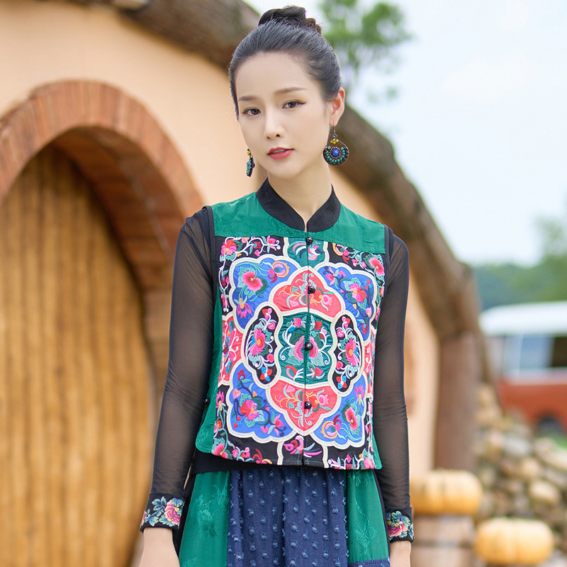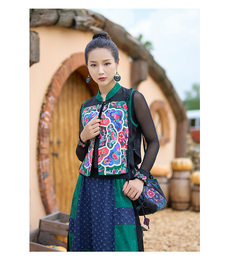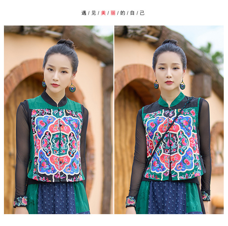 Женская одежда в этническом стиле, прочный старый вышитый жилет, многоцветная нашивка, небольшой воротник-стойка с вышивкой, короткий жилет, жилет, небольшая верхняя одежда
