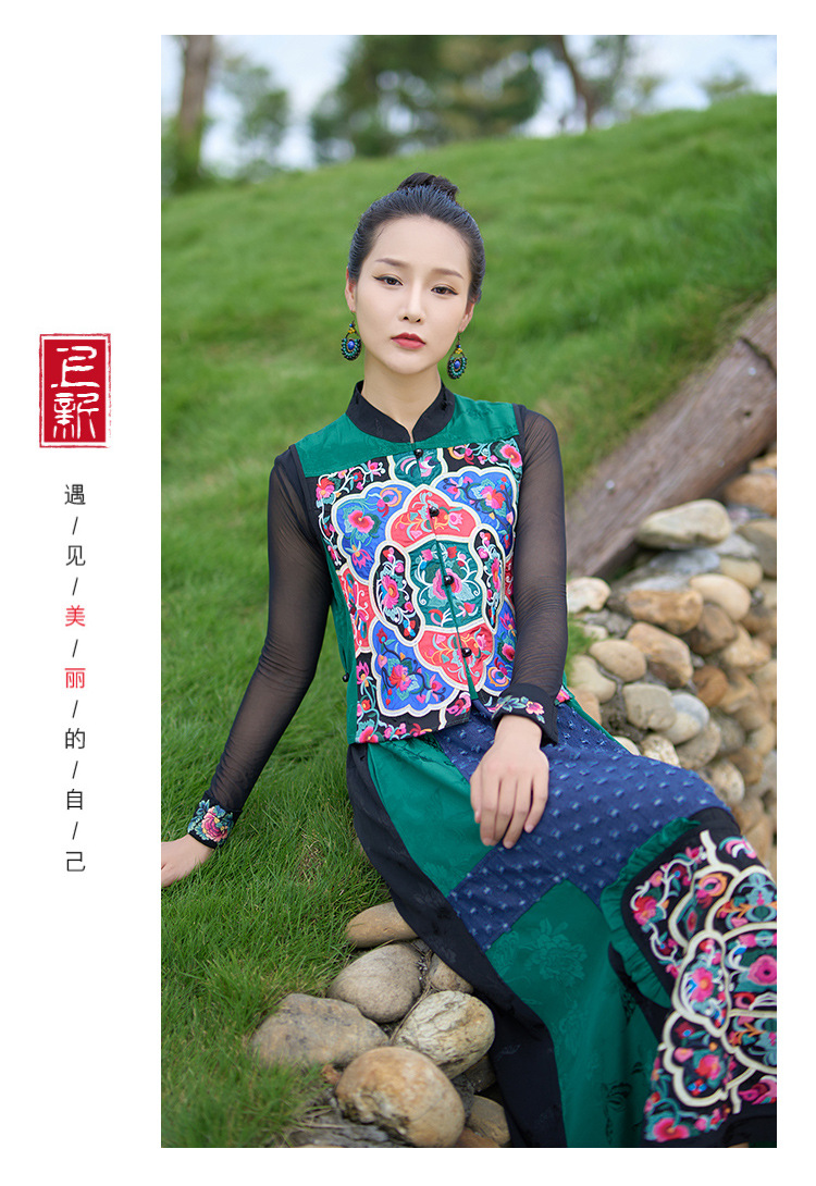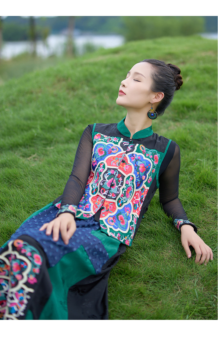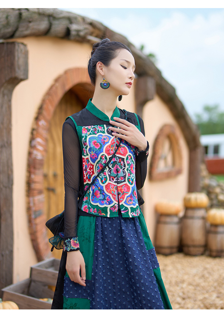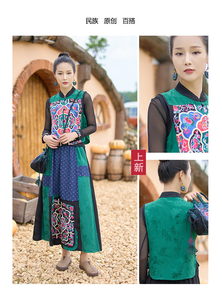 Женская одежда в этническом стиле, прочный старый вышитый жилет, многоцветная нашивка, небольшой воротник-стойка с вышивкой, короткий жилет, жилет, небольшая верхняя одежда