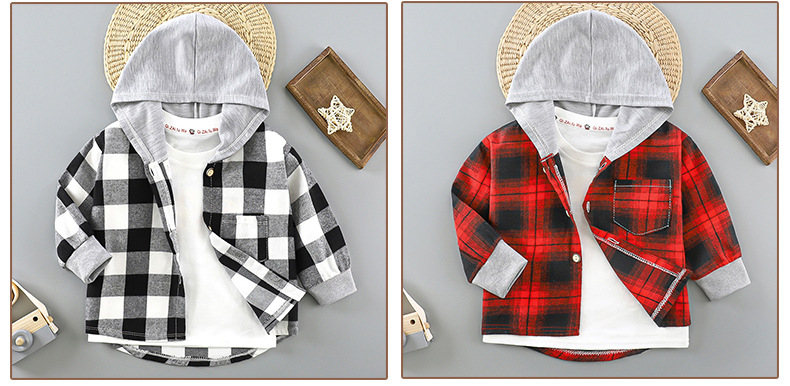 Детская рубашка с длинными рукавами, весенне-осенний Топ для мальчиков в клетку, кардиган для девочек, рубашка в западном стиле, детская весенне-осенняя рубашка с капюшоном