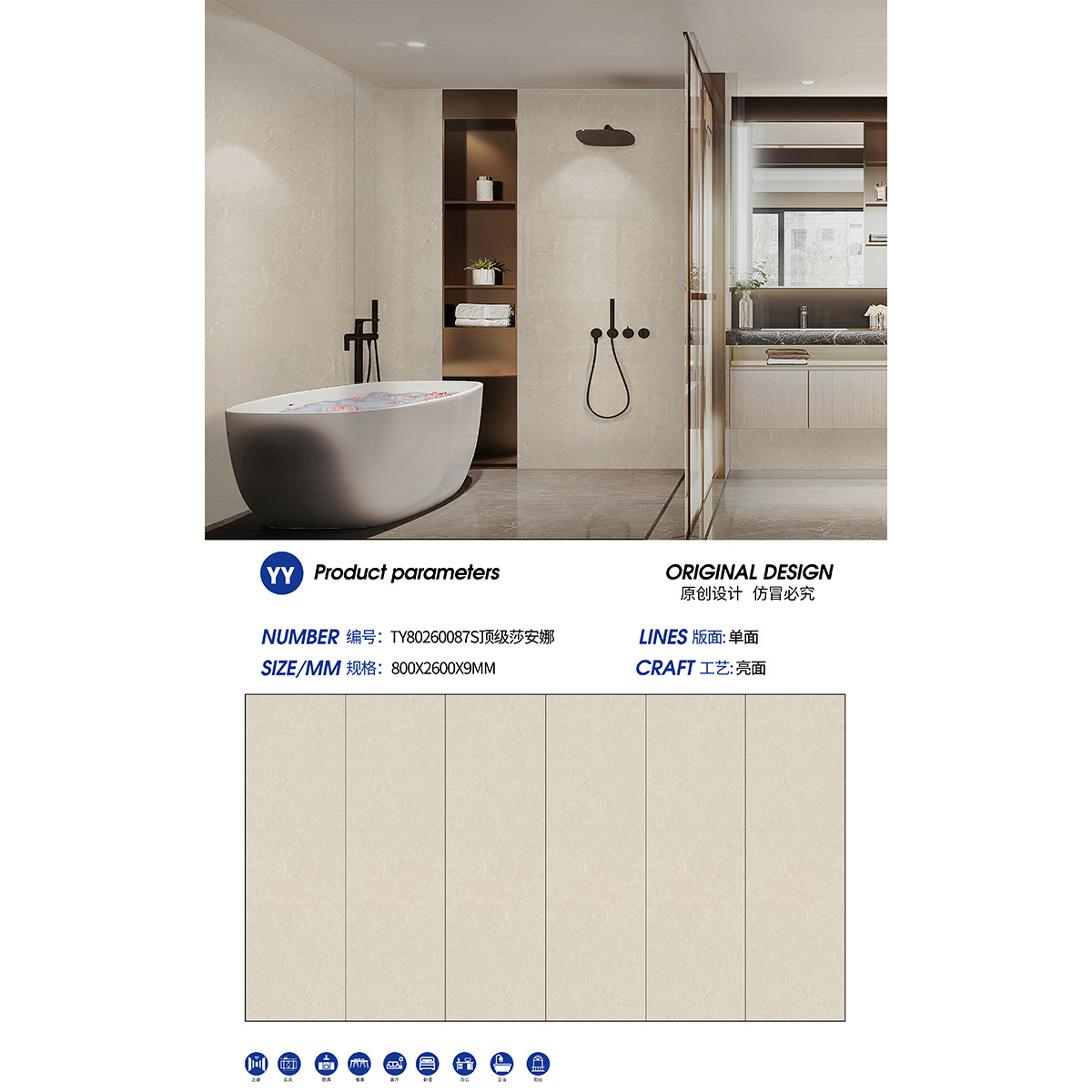 Арктический ледник белый; Бергамо белый; чистый белый; свято; Классический Боргати; джаз белый; Виктория; Летний эльф; Специальный сорт Яши белый; Ора белая; золотисто-белый; Новый напечатанный снег; жемчужно-белый; белый камень; рококо молочно-белый; Рококо-пудинг; живот рыбы серый; Эмма Грей; Ультраман; Шаанна; Белоснежка; Магнолия; Болгарский беж; топаз; Пупы кремового цвета; Новая шахта Шахана; Пупесми серый; Боргати; Исландский нефрит; Ханьцзян Сноу; Хотан Нефрит; Калифорнийский бежевый; манхэттен серый; Санторини; Порошок четырех сезонов; Виктория панда белая; Итальянский облачно-серый B; Облака серые; золотое звездное небо; Лантяньский золотой бассейн; Линкольн Белый; агат; монтейский кофе; скопица древесины; Кристалл Баогели; Специальный сорт перегородчатой эмали; Ночной сапфир; Боргати черный; Блэйк Си Джялан; Версаче черный; красный травертин; Симфония зеленая; Мандела красный; Хилл черный; галактика