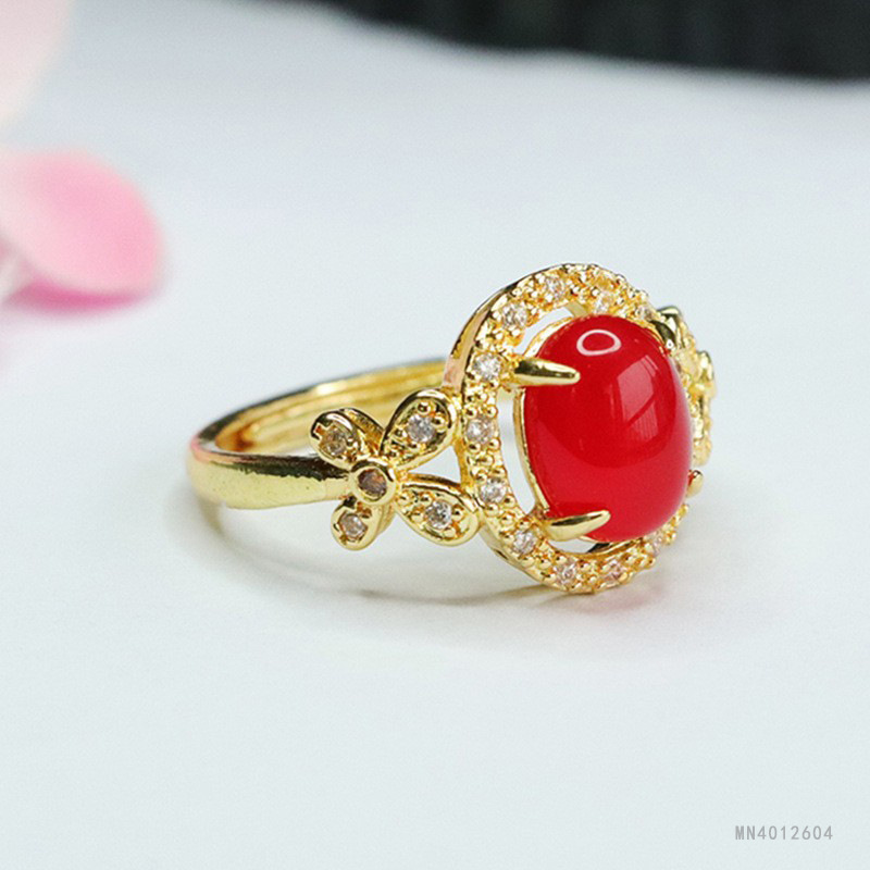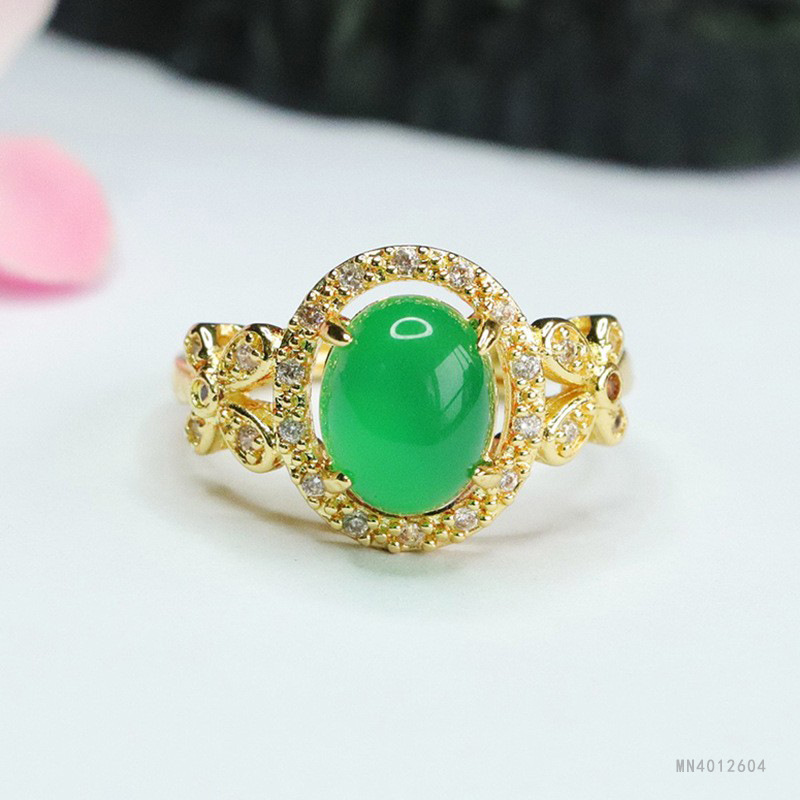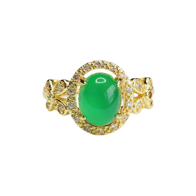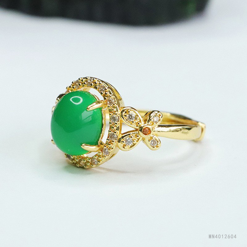 Кольцо из зеленого халцедона «Ледяной император Гуань Ю» с красным агатом для женщин, оптовая продажа и дропшиппинг в китайском стиле S4012604