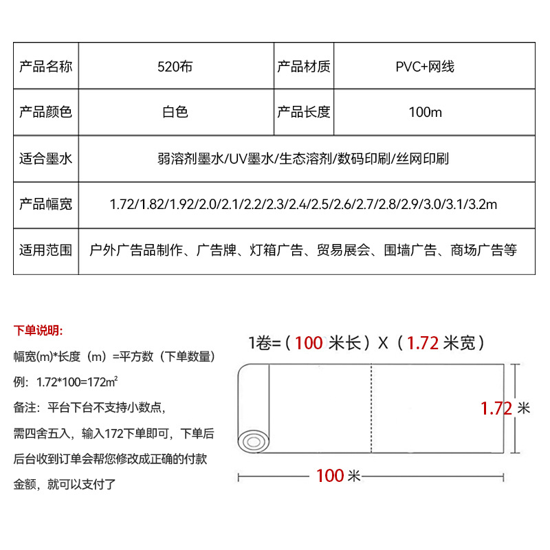Ткань для струйной печати 520 для свадебного декора, ткань для световых коробов, защита пола, ткань для строительных ограждений, рекламная ткань, светопрозрачная ткань для световых коробов