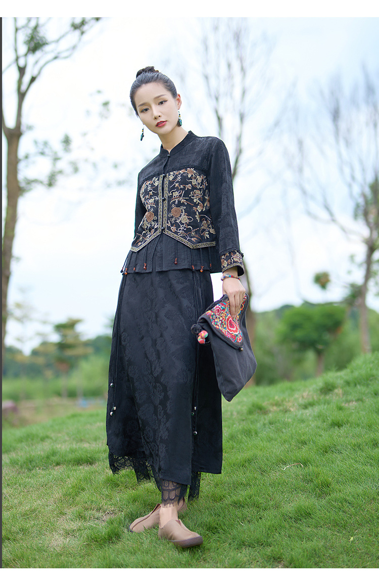 Весна и осень Новый Художественный темперамент плюс размер поддельные две части парчи сверхпрочное вышитое бисером пальто Универсальный Кардиган Верхняя одежда