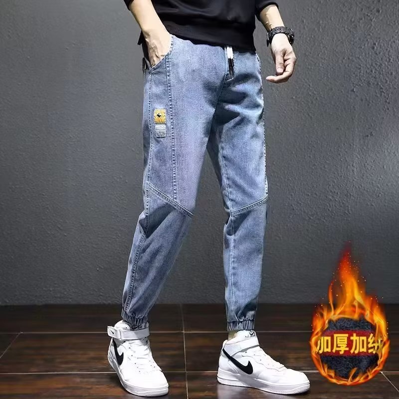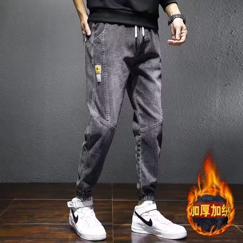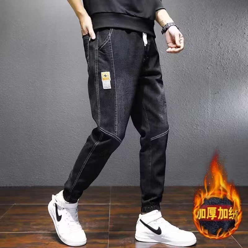 Трансграничное поколение волос плюс бархатные джинсы для мужчин осень новая утолщенная теплая