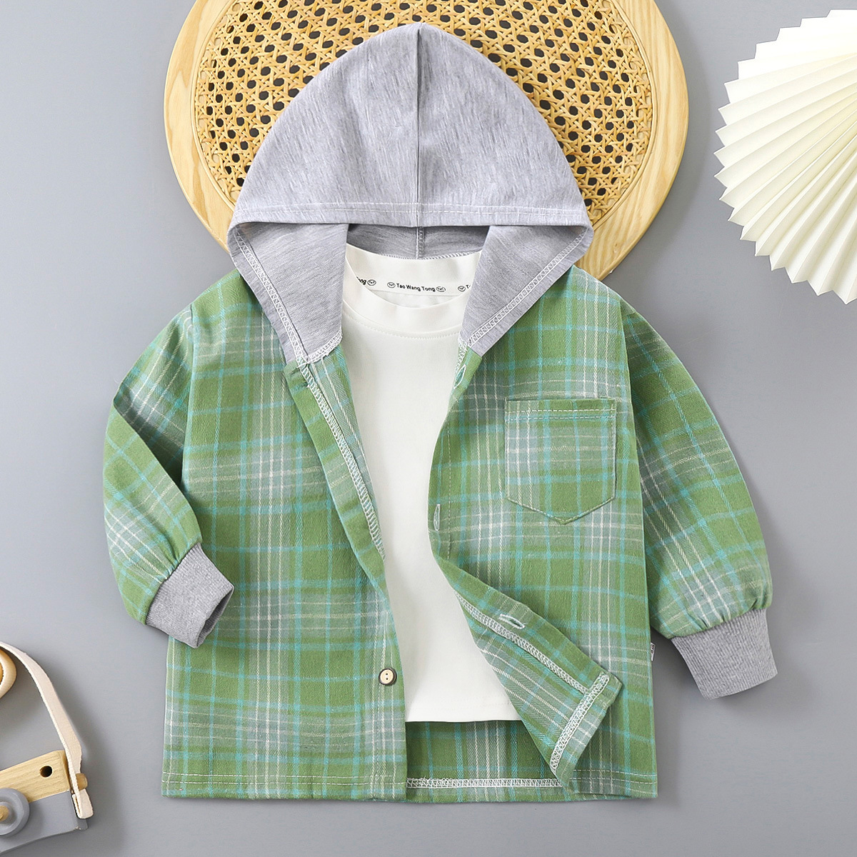 Детская рубашка с длинными рукавами Клетчатая детская весенне-осенняя одежда Топ Детский кардиган рубашка в западном стиле детская весенне-осенняя одежда с капюшоном