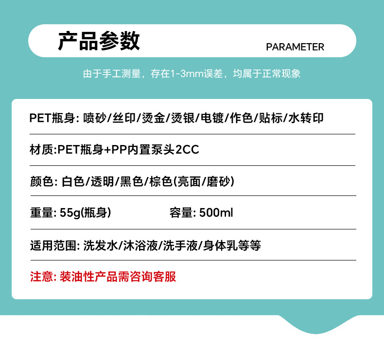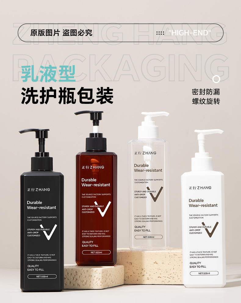 透明洗护按压pet方瓶乳液化妆品包材500ml高颜值洗手液塑料瓶子