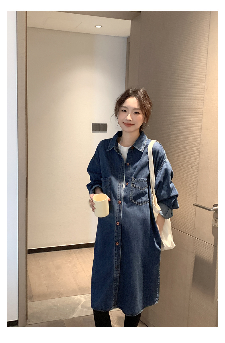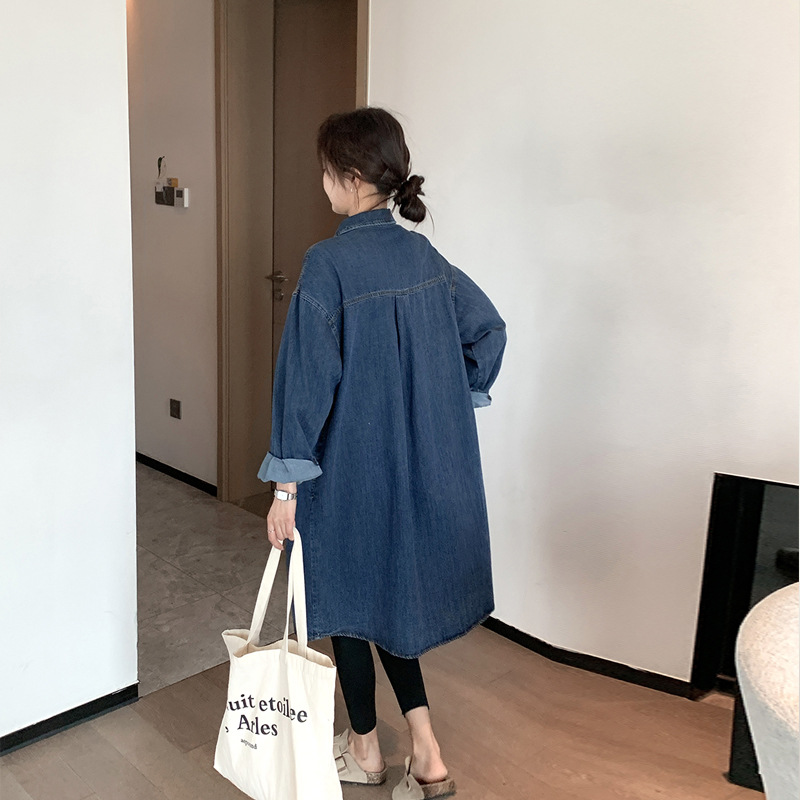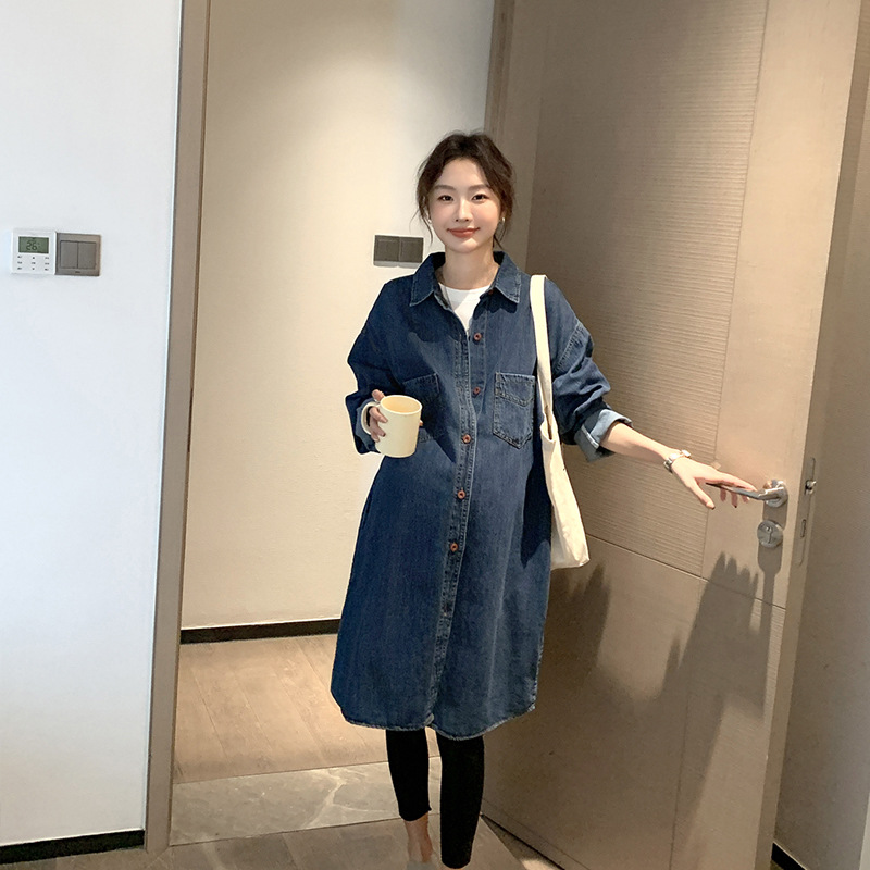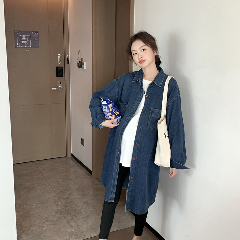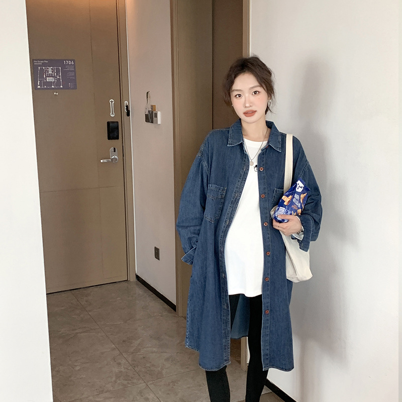 Весна и Осень Одежда для беременных корейский стиль свободная печать материнства джинсовая рубашка пальто с длинным выбеленным длинным рукавом рубашка юбка большая