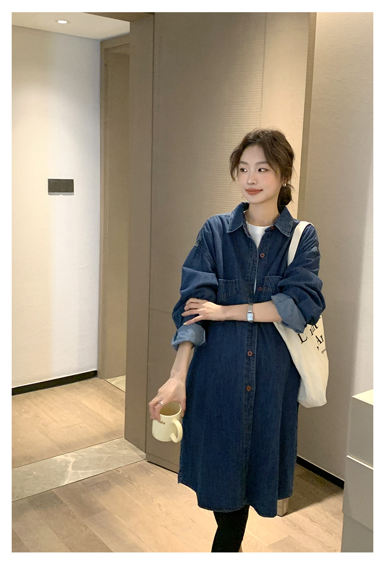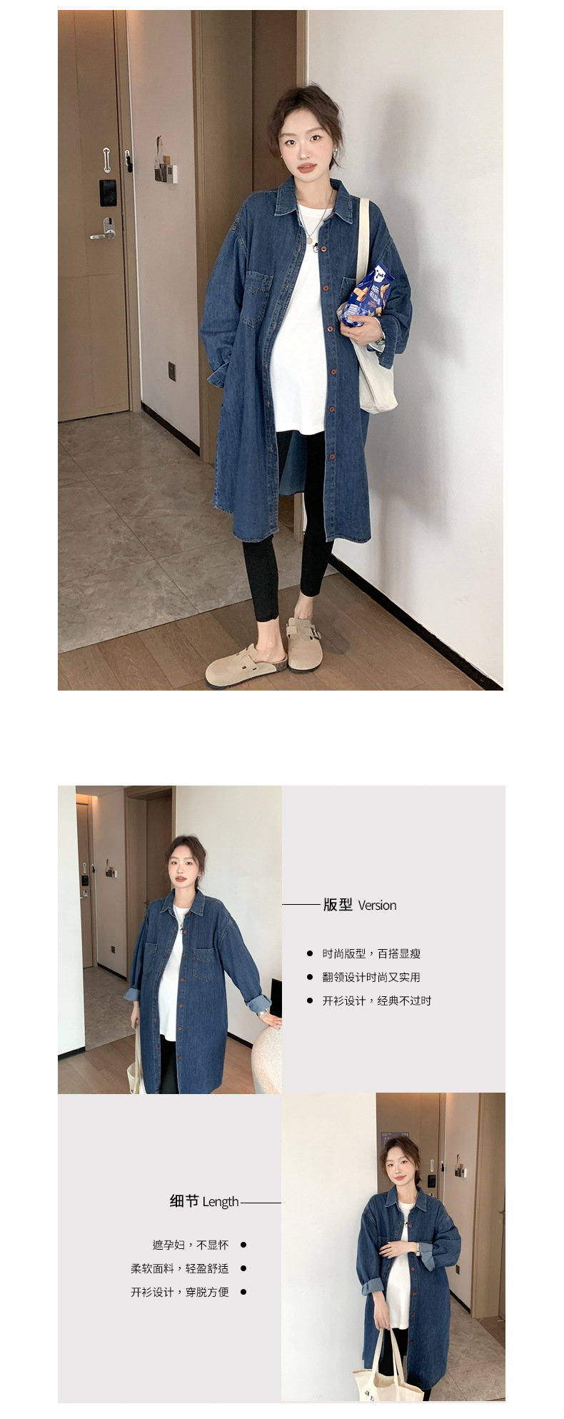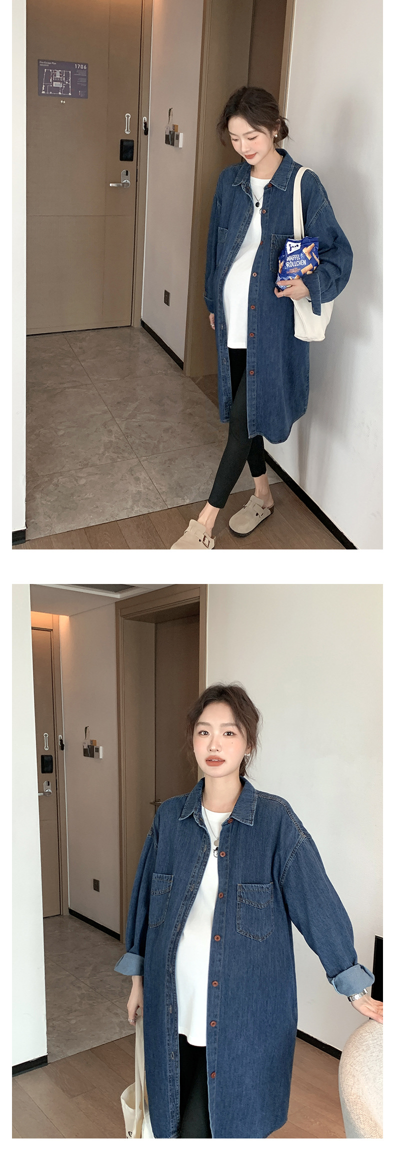 Весна и Осень Одежда для беременных корейский стиль свободная печать материнства джинсовая рубашка пальто с длинным выбеленным длинным рукавом рубашка юбка большая