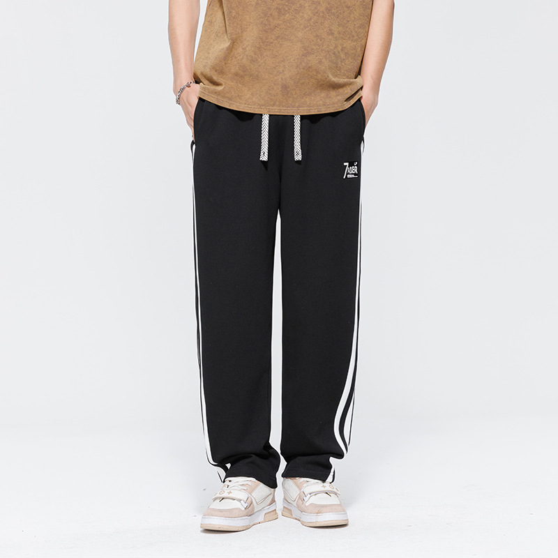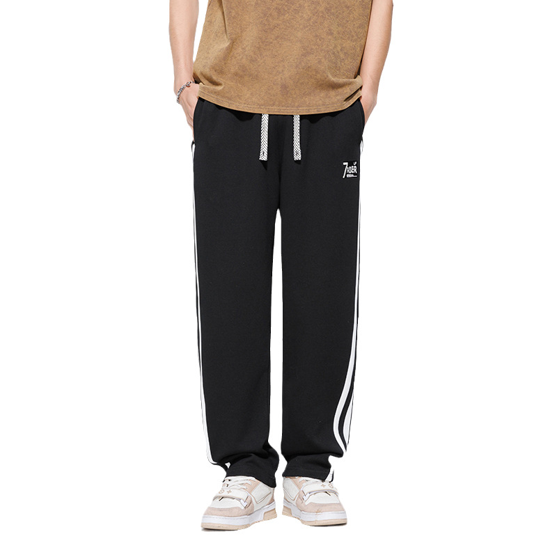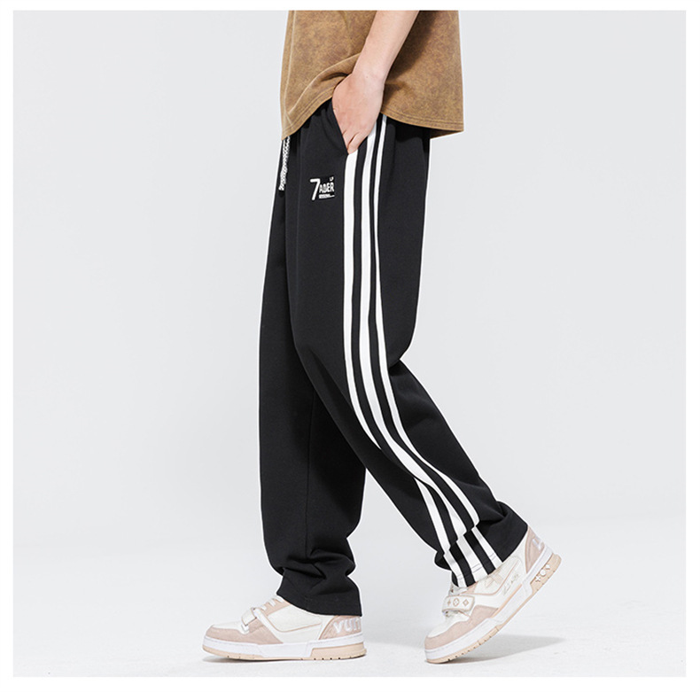Прямые брюки мужские черные с драпировкой Свободные повседневные спортивные брюки модные толстые трикотажные брюки больших размеров Мужская одежда больших размеров