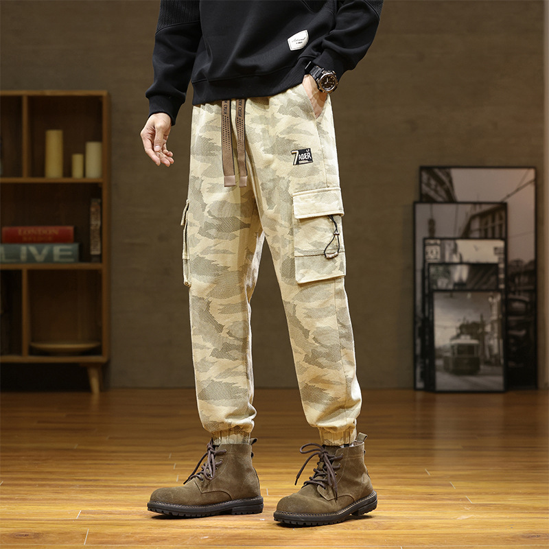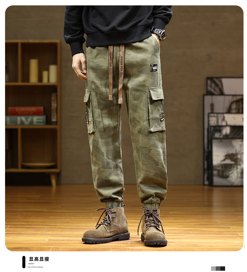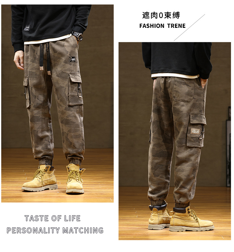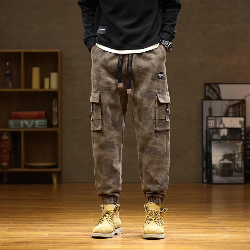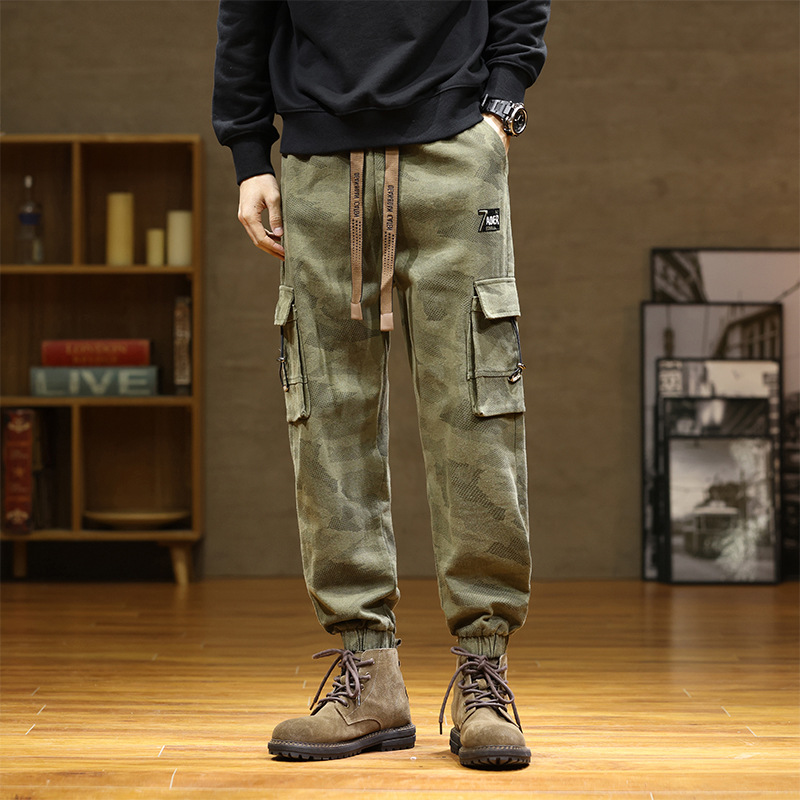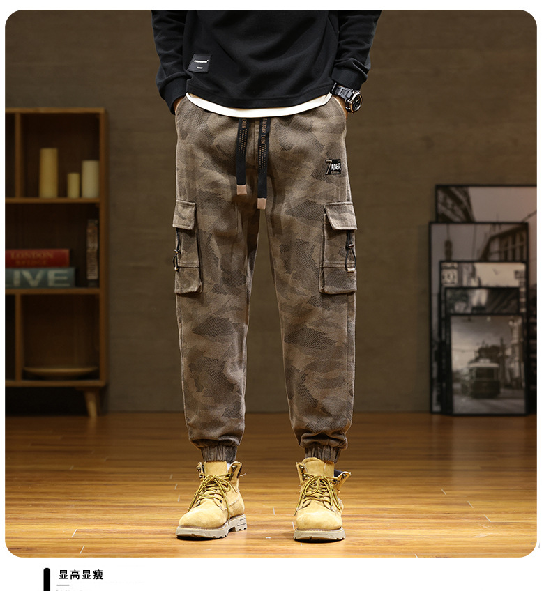 Камуфляжный комбинезон, мужской завязанный на щиколотке, новый уличный американский модный бренд, мужские толстые большие размеры, мужские брюки больших размеров
