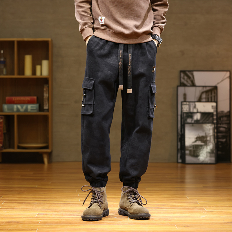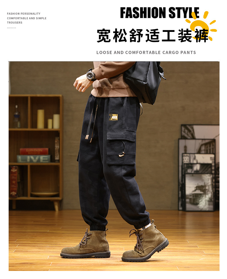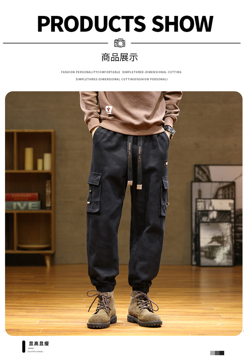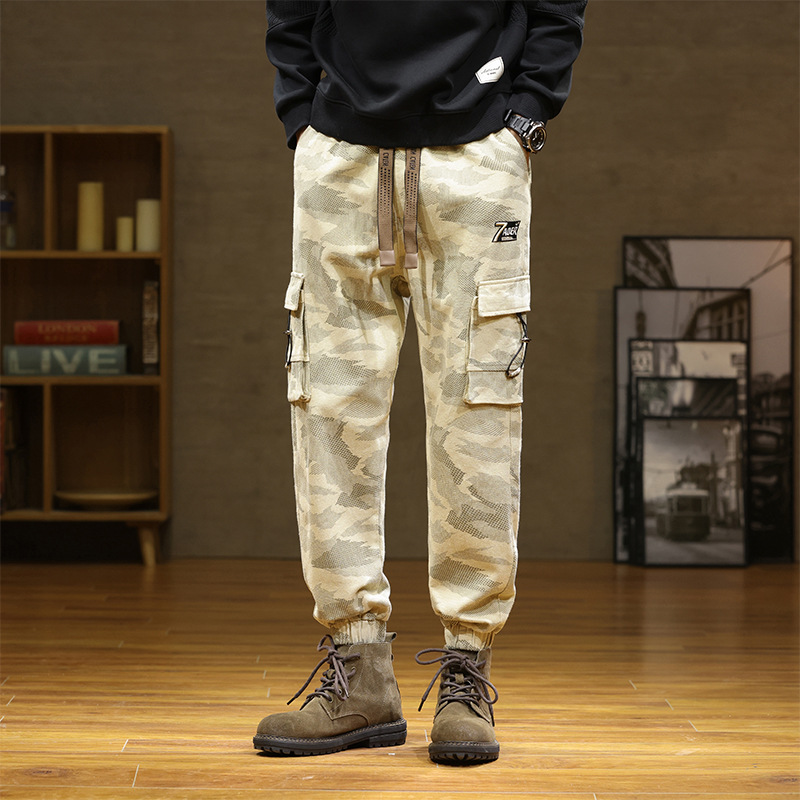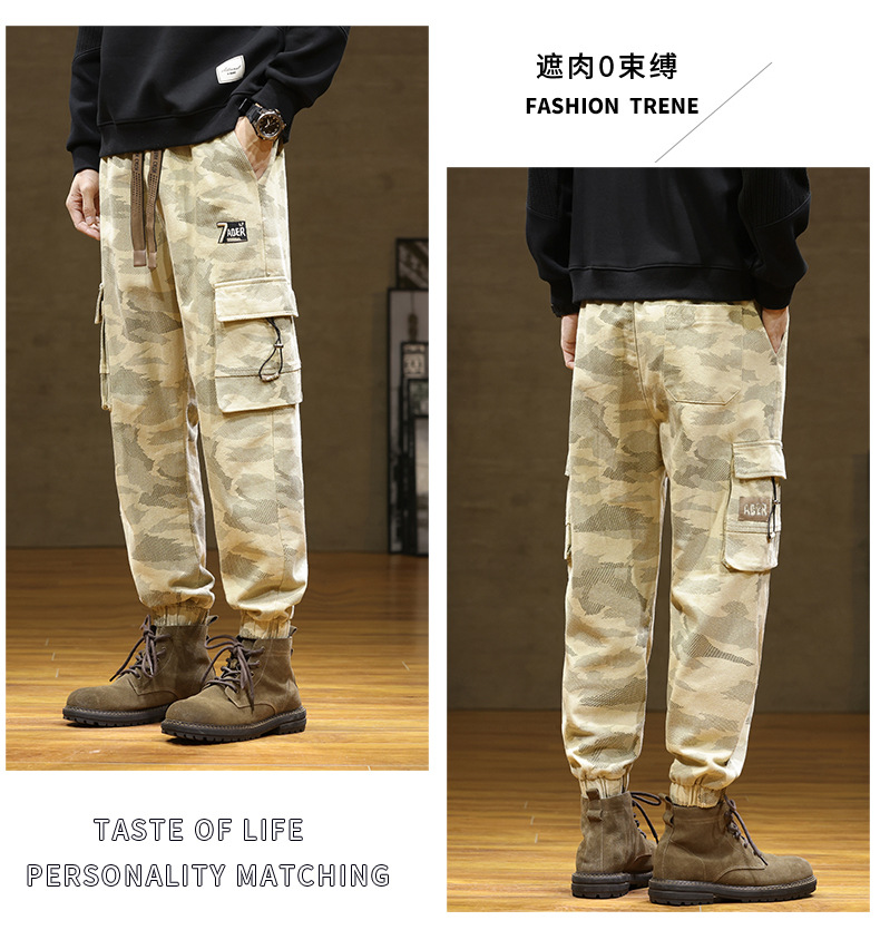 Камуфляжный комбинезон, мужской завязанный на щиколотке, новый уличный американский модный бренд, мужские толстые большие размеры, мужские брюки больших размеров