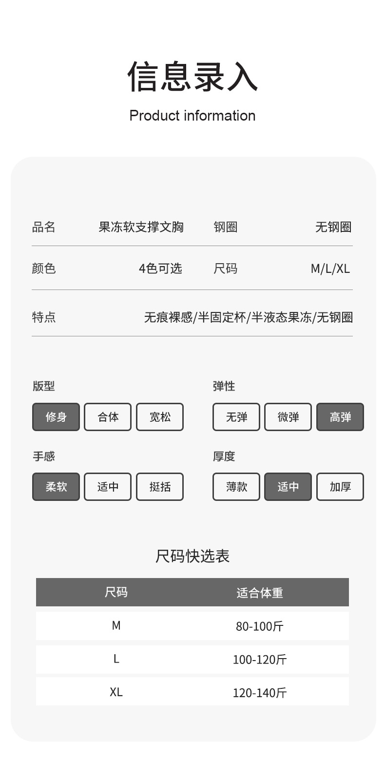 Соберите; Бесследный; Дышащий; Верхняя поддержка; Красота спины; Поглощение пота; Анти -- Выдержка; Регулируемый Тип; Удобный; Боковое закрытие; Коллекция груди