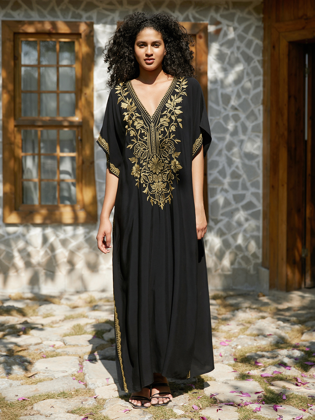 Пляжное платье из вискозы с вышивкой, праздничное платье-халат, трансграничное Amazon 23167 (6 цветов) L