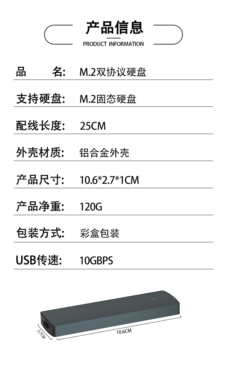 Коробка жесткого диска алюминиевого сплава расширения ноутбука 2 ТБ коробки жесткого диска двойн-протокола М.2 Мобильная твердотельная